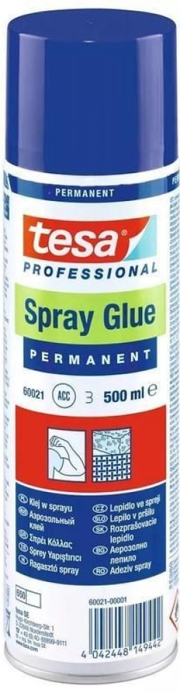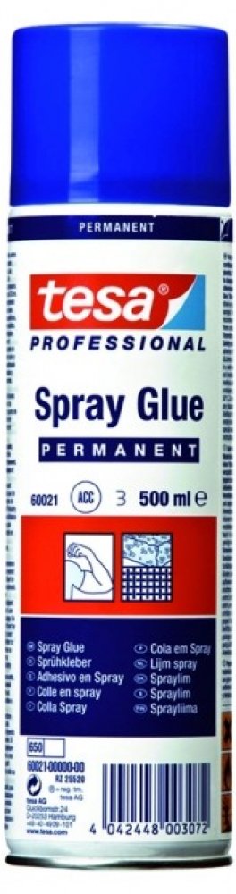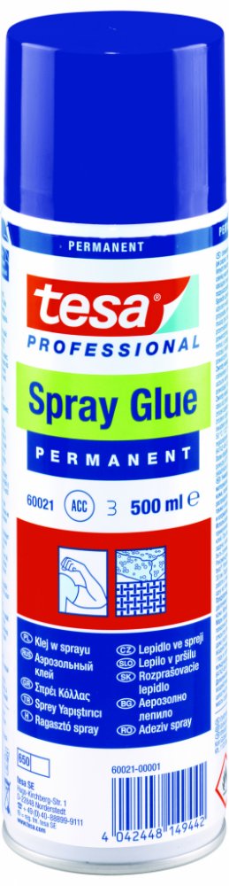 Lepidlo ve spreji Tesa® Lepidlo ve spreji TRVALÉ 60021 je univerzální lepidlo pro trvalé spojení, papíru, kartonu, plsťě, látek, folií, dřeva, kůže, polystyrenu a mnoha druhů různých plastů.Vlastnostipro čisté, úsporné, bezpečné a rychlé spojení velkých plochvhodné pro lehké a středně těžké materiály s rovnými nebo nepatrně nerovnými plochamilepidlo se rozptyluje jemně a rovnoměrněrychle zasycháodolné vůči vlhkosti a mechanické a tepelné zátěživhodné pro lepení Styrofoam®neobsahuje silikon ani chlorová rozpouštědla