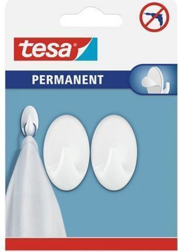 tesa Permanent Háčky plastové vel. S oválné bílé, 2 ks