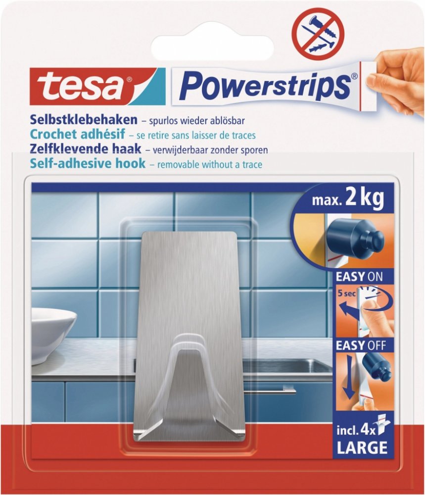 tesa Samolepicí háček Powerstrips L velký obdélníkový, nerezová ocel, 1 ks