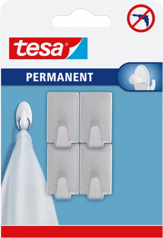 tesa Samolepicí háčky Permanent S obdélníkové, nerezová ocel, 4 ks