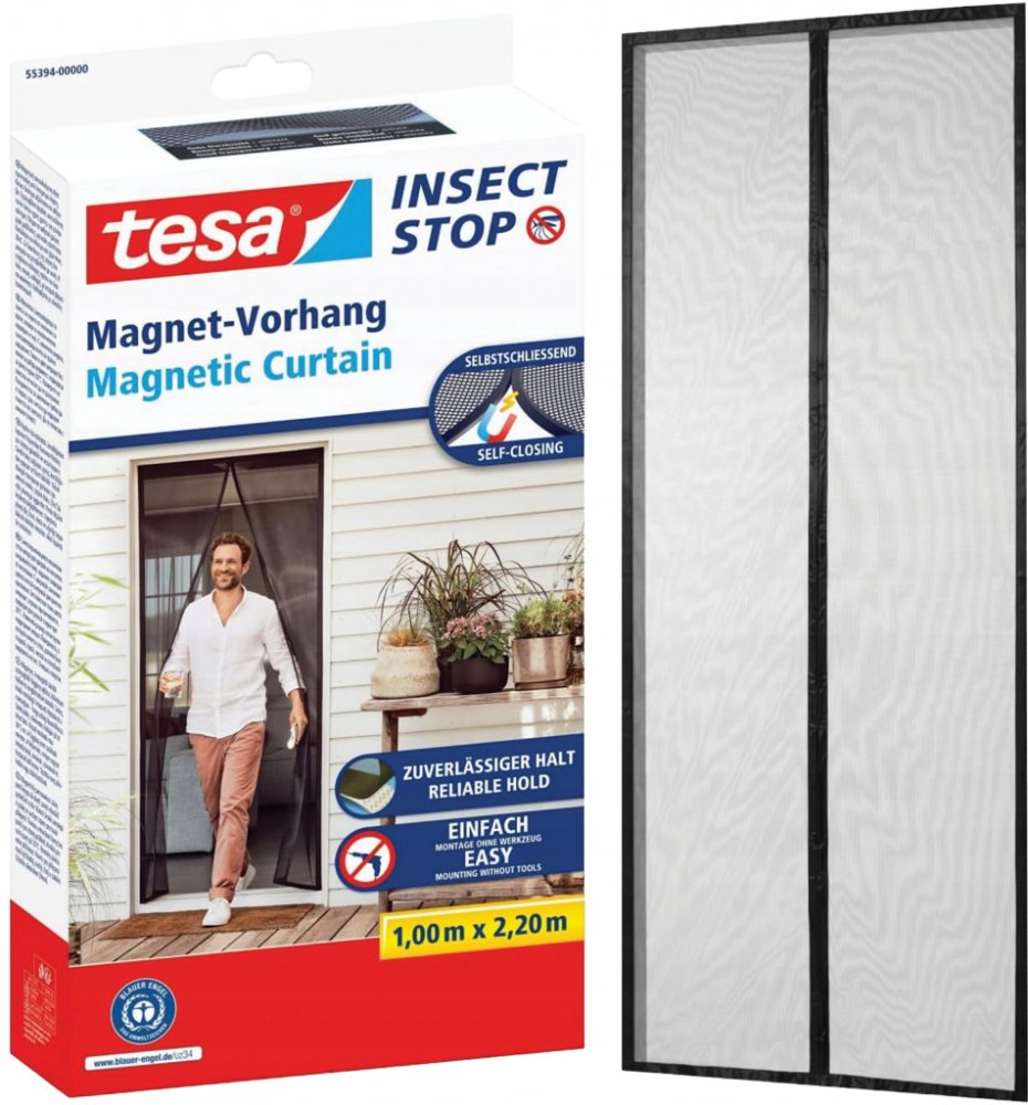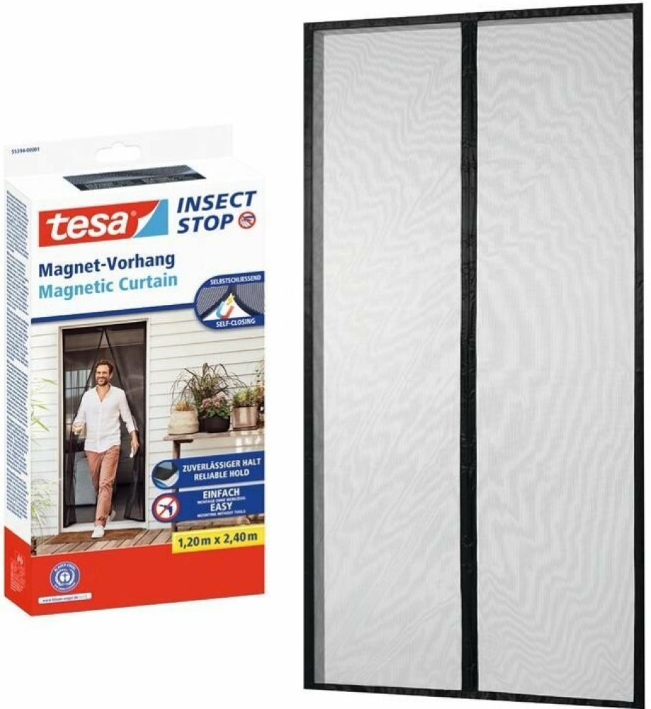 tesa Insect Stop magnetická síť do dveří Nejlepší způsob, jak udržet hmyz mimo obytný prostor je samouzavírací magnetický závěs tesa, který spolehlivě zabrání tomu, aby se terasové a balkónové dveře staly vstupní bránou pro komáry a jiný hmyz. 30 magnetů všitých do závěsu zajišťuje snadné otevírání a zavírání dveřního závěsu bez námahy - zvláště doporučujeme, pokud jsou v domácnosti děti. Samouzavírací funkce závěsu je velmi praktická pro majitele domácích mazlíčků. Široký samolepicí pásek se snadno používá a lze jej oříznout na požadovanou velikost, díky čemuž je tato instalace bez vrtání přístupná všem. Vlastnosti tesa Insect Stop magnetické sítě do dveří - Magnetická a pohodlná - moderní záclona se sítí proti hmyzu se sama zavře, když skrze ni procházíte - Inovativní síť proto hmyzu speciálně pro balkónové a terasové dveře - udržuje hmyz a pavouky mimo interiér - Snadné připevnění pomocí samolepicí pásky - pro snadnou a rychlou montáž bez vrtání a nářadí - Magnetický závěs se širokou a silnou samolepicí páskou - výkonná páska pro trvalé použití - Ideální pro nájemní byty - nezanechává žádné otvory po vrtání ve zdech - Dobrá viditelnost skrze okna - tkanina v antracitové barvě nabízí vysokou průhlednost a nezanechává šmouhy - Tiché zavírání závěsu - 30 silných, všitých magnetů - Žádné ruční otevírání a zavírání - ideální pro rodiny s dětmi, také praktické a pohodlné pro majitele domácích mazlíčků - Závěs proti hmyzu se snadnou údržbou - doporučuje se ruční praní na 30 °C Parametry výrobku Instalace: pomocí samolepící pásky/proužku/lepidla Doba instalace: 15 min. Druh lepidla: akrylát Materiál: polyester Mřížka (počet vláken na palec čtvereční): 9 vláken/cm Možnost opětovného využití: ano Oblast použití: interiér Odstranění bez zanechání zbytků lepidla: ne Omyvatelná: ano (lze prát na 30 °C) Instalace magnetických sítí do dveří tesa Insect Stop Magnetické sítě do dveří tesa Insect Stop se instalují snadno a rychle během 15 minut. Instalace je snadná pro každého. Samolepicí pásku ustřihněte na vámi požadovaný rozměr, připevněte k zárubni po celém obvodu a poté připevněte závěs. Toť vše, a máte hotovo!
