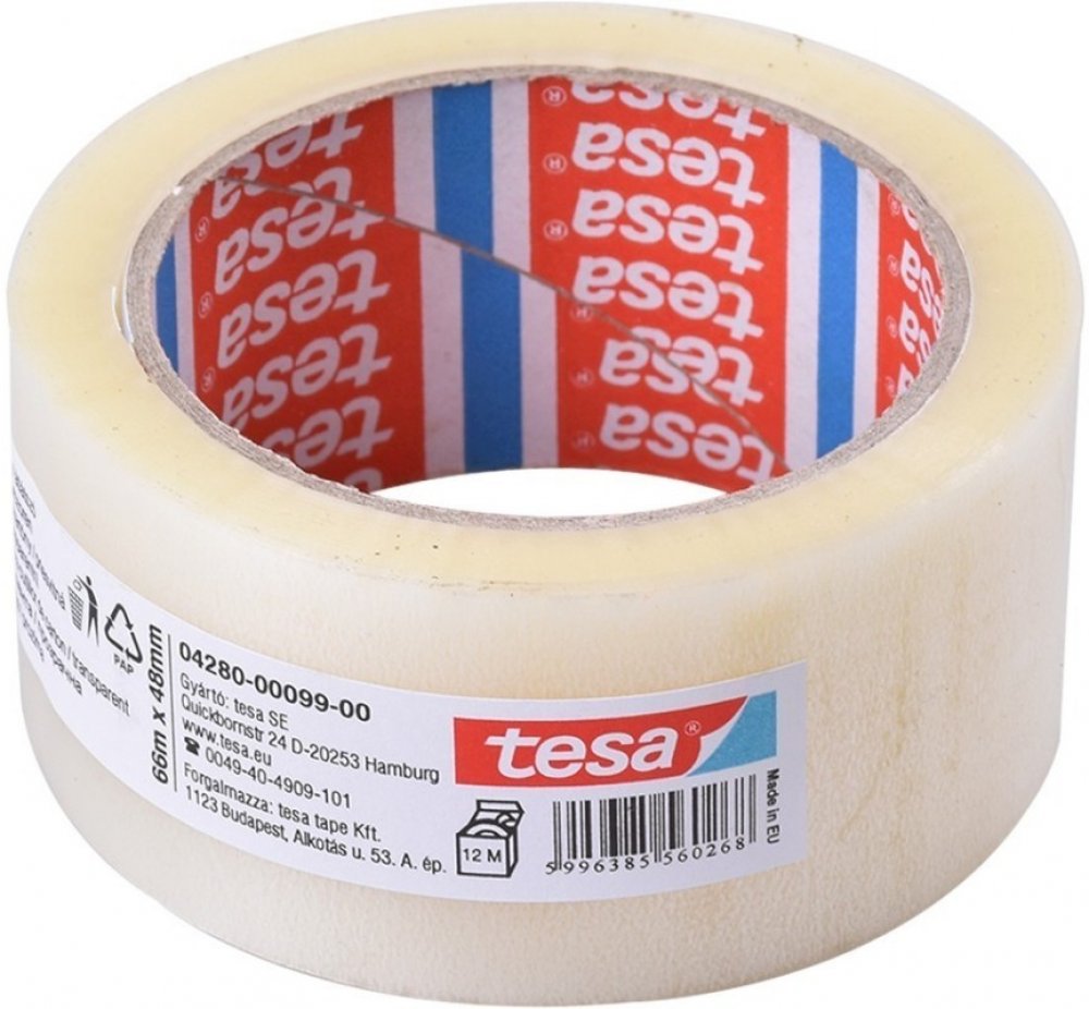 Standardní balicí páska kartonů a zásilek. Tesa® 4280, je samolepicí balicí páska založená na 25μm PP nosiči a lepidla ze syntetického kaučuku. Výrobek je k dispozici ve 2 barvách a má hlučné odvíjení.