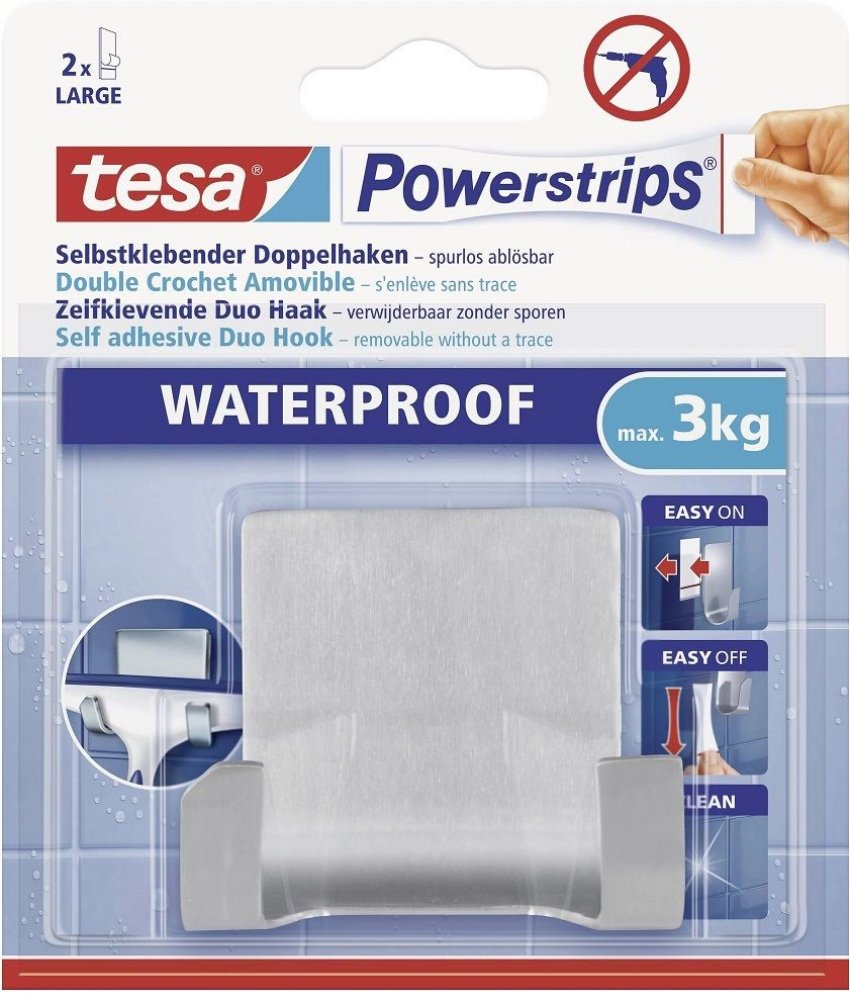 Samolepicí dvojitý háček Tesa Powerstrips snadno upevníte k jakémukoli pevnému a hladkému povrchu, a to díky pokročilé samolepicí technologii. S jeho pomocí tak budete mít zavěšené předměty vždy po ruce. Držák se vyznačuje minimalistickým vzhledem a je vyroben z nerezové oceli.. Aplikaci provedete bez vrtání, šroubů nebo hřebíků. Současně držák také snadno kdykoli odstraníte, aniž by zanechával stopy na povrchu.