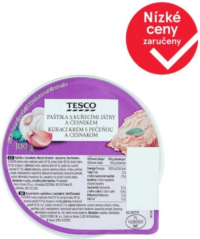 Tesco Paštika s kuřecími játry a česnekem 100 g