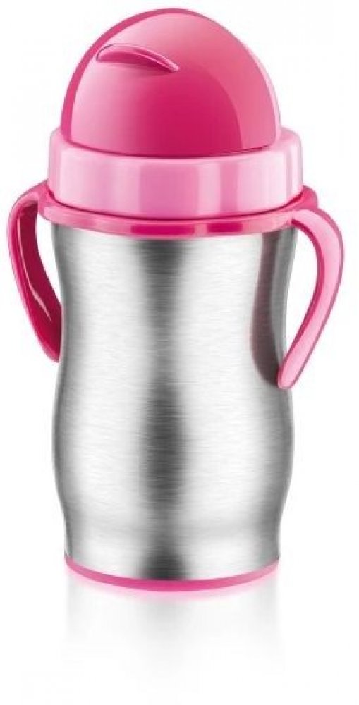 Dětská nerezová termoska s brčkem Tescoma Bambini pro holky v růžové barvě o objemu 300 ml uchová dětské nápoje teplé nebo vychlazené. Dvouplášťová vakuová termoska je opatřena pružným silikonovým brčkem a odnímatelnou klipsou pro zavěšení. Je vyrobena z prvotřídní nerezavějící oceli a odolného plastu. Nádobu lze mýt v myčce, uzávěr, brčko a těsnění čistěte pod tekoucí vodou a osušt...