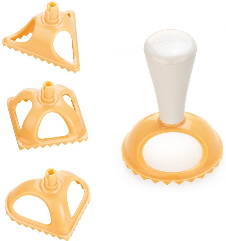 Vynikající pro přípravu klasických i originálních italských těstovin ravioli ve tvaru koleček, čtverečků, trojúhelníků a srdíček, s univerzální snadno vyměnitelnou rukojetí. Vyrobeno z prvotřídního odolného plastu, vhodné do myčky. Recepty uvnitř balení. 3 roky záruka.
