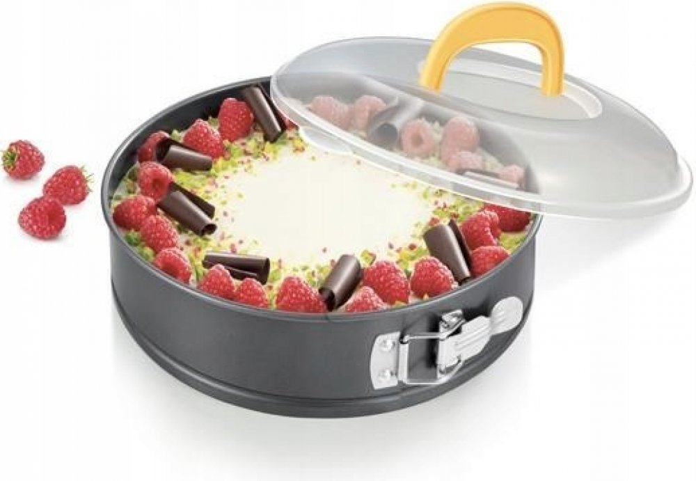 Pro snadnou přípravu a bezpečné přenášení dortů. V čem Forma na dort rozkládací DELÍCIA s poklopem vyniká? Klasická rozkládací forma na dorty s prvotřídním antiadhezním povlakem je opatřena plastovým ochranným poklopem. Ve formě s nasazeným poklopem jsou dorty skladovány hygienicky a chráněny proti osychání. Pro pohodlné přenášení dortů má poklop prostornou sklápěcí rukojeť, díky které je fo...