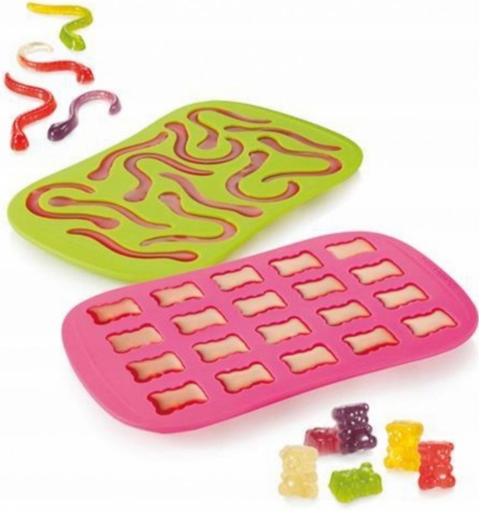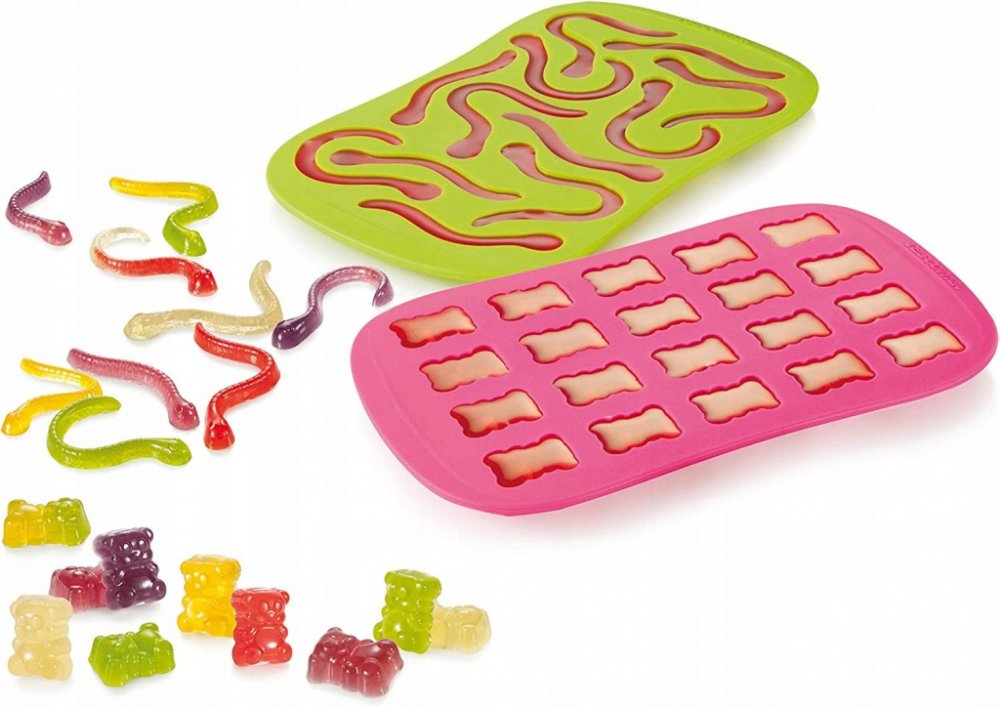 Obě silikonové formy jsou vynikající pro přípravu originálně tvarovaných domácích želatinových medvídků a žížal bez použití konzervantů, umělých barviv a přebytečných sladidel.
