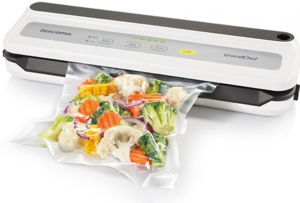 Moderní svářečka pro vakuové skladování potravin. Ve vakuovací svářečce můžete do vakuovacích fólií nebo uzavíratelných vakuovacích sáčků uzavřít potraviny a hygienicky je skladovat v lednici, v mrazničce nebo při pokojové teplotě.Trvanlivost vakuovaných potravin je výrazně delší, než při jejich běžném skladování. Pokrmy uzavřené ve vakuu lze účinně marinovat, zachovávají si přirozenou chuť a lze je připravit metodou „sous-vide“, tedy pomalým vařením při nízké teplotě ve vakuu.Vakuová svářečka GrandCHEF je dodávána s vakuovací fólií. Pro pohodlné a bezpečné použití má svářečka unikátní vyjímatelnou řezačku fólií, kterou můžete k přípravě fólií ponechat vloženou ve svářečce nebo ji vyjmout a používat volně na ploše.Samostatně dodávané náhradní Vakuovací fólie 4FOOD a samostatně dodávané Vakuovací sáčky uzavíratelné 4FOOD jsou vhodné i pro použití s ostatními běžnými domácími vakuovými svářečkami.Fólie i sáčky 4FOOD mají zvýšenou odolnost vůči protrhnutí, jsou vhodné do ledničky, mrazničky i mikrovlnné trouby a můžete je po vyčištění použít opakovaně.Čištění: Čistěte vlhkou utěrkou a osušte.