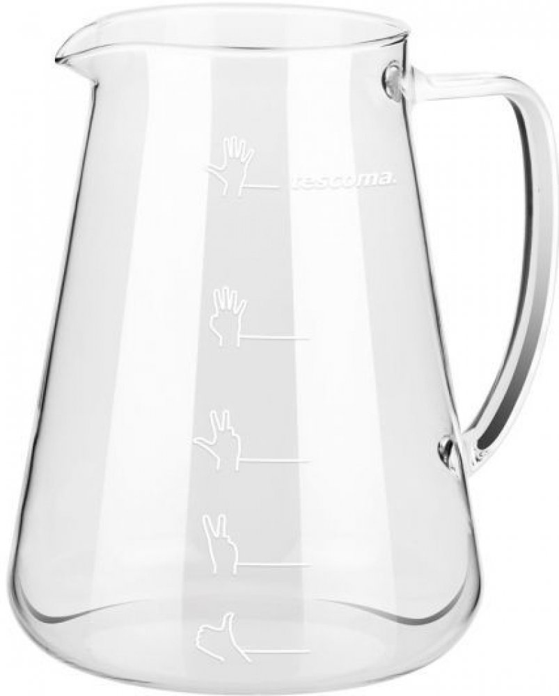 Není nad to užít si své oblíbené pivo v pohodlí domova. Stačí vzít stylový Tescoma Mybeer Džbán na pivo 2,5 l a skočit pro pivo. Je vyroben v jedinečném designu s nápaditou vtipnou odměrkou se kterou se nikde v hospodách či barech nesetkáte. Velký objem pojme až 5 točených piv. Má dostatečně velké ucho pro pohodlné nošení. Velmi kvalitní a bytelné žáruvzdorného borosilikátové sklo v něm umožňuje podávat také horké nápoje nebo třeba studené limonády. Výhodou je možnost mytí v myčce. Odměrka je pouze orientační, není kalibrovaná.