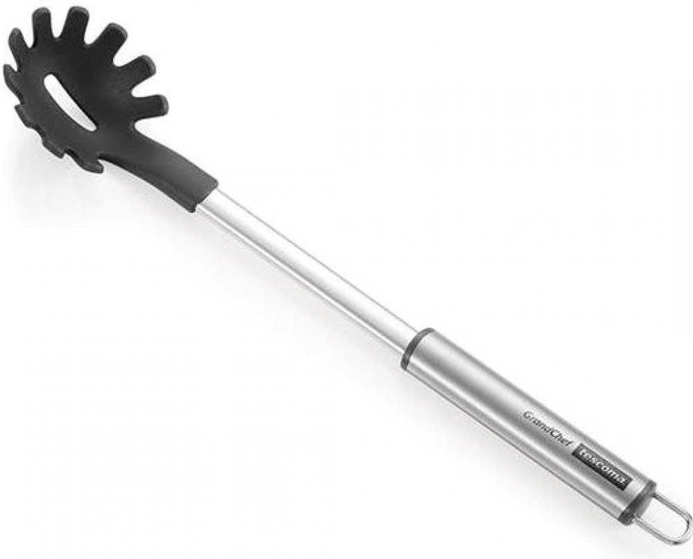 Pracujte v kuchyni jako profesionál. S prémiovým kuchyňským náčiním TESCOMA GrandCHEF vám půjde příprava pokrmů od ruky. Naběračka na špagety GrandCHEF+ je vyrobena z kombinace prvotřídní nerezavějící oceli a žáruvzdorného nylonu, odolného do 210 °C. Je to praktický a kvalitní pomocník pro nabírání nejrůznějších druhů špaget a těstovin. Na konci rukojeti naleznete očko pro zavěšení. Použití naběra...