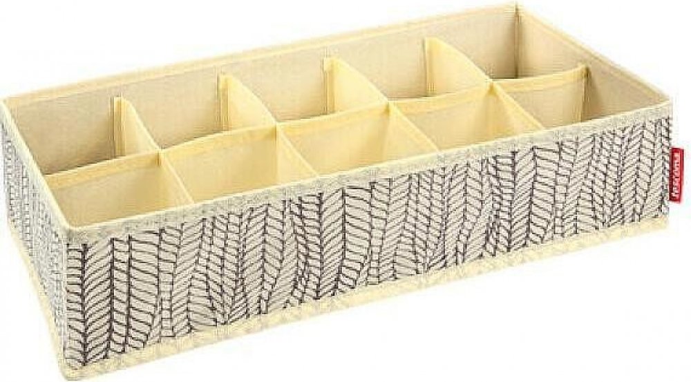 Organizér s 10 oddíly vynikající pro přehledné skladování ponožek a spodního prádla v zásuvkách komod apod. Prodyšný syntetický materiál s kvalitním zipem, lze snadno složit. 3 roky záruka. Čistěte vlhkou utěrkou a nechte uschnout, neperte v pračce.