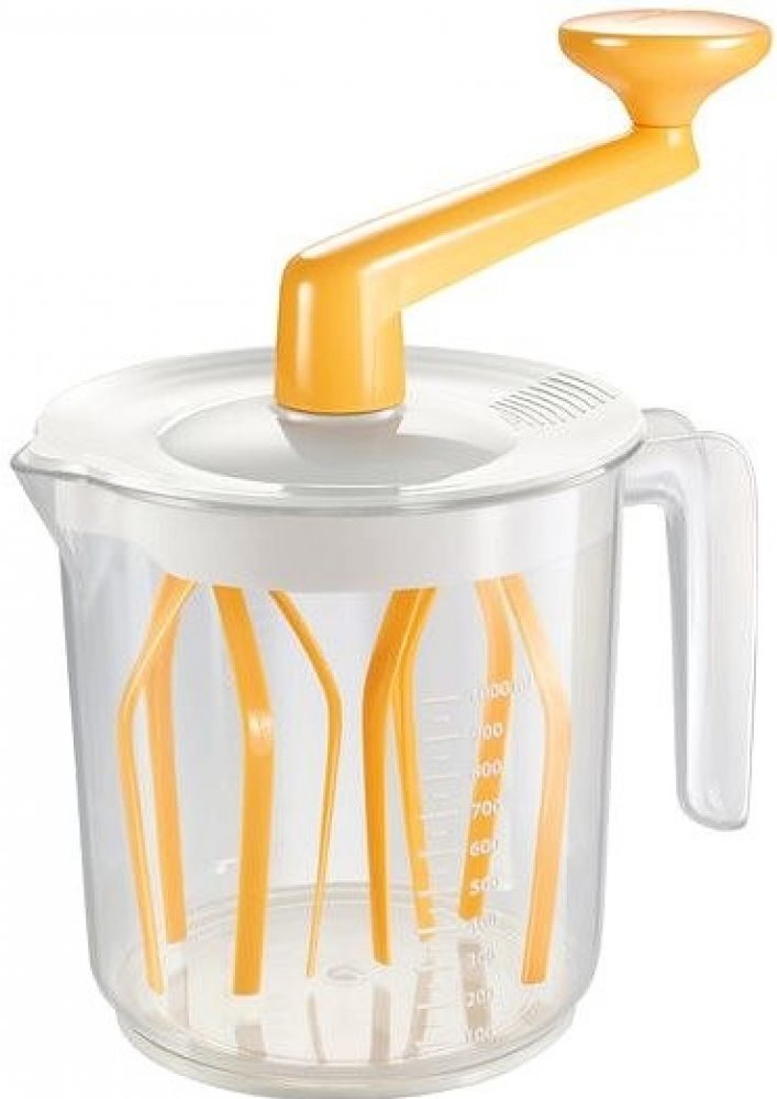 S praktickým ručním šlehačem snadno připravíte vynikající šlehačku, pevný sníh z bílků, vyšleháte tekuté těsto, cukrářský krém či chutný dresink. Kvalitní ruční šlehač Tescoma DELÍCIA je vybaven otočnou rukojetí a čtyřmi šlehacími metlami, které rotují proti sobě, a tím vytváří velmi účinný a intenzivní šlehací efekt. Ruční šlehač Tescoma DELÍCIA se skládá z nádoby o objemu 1 litr, která je opatře...