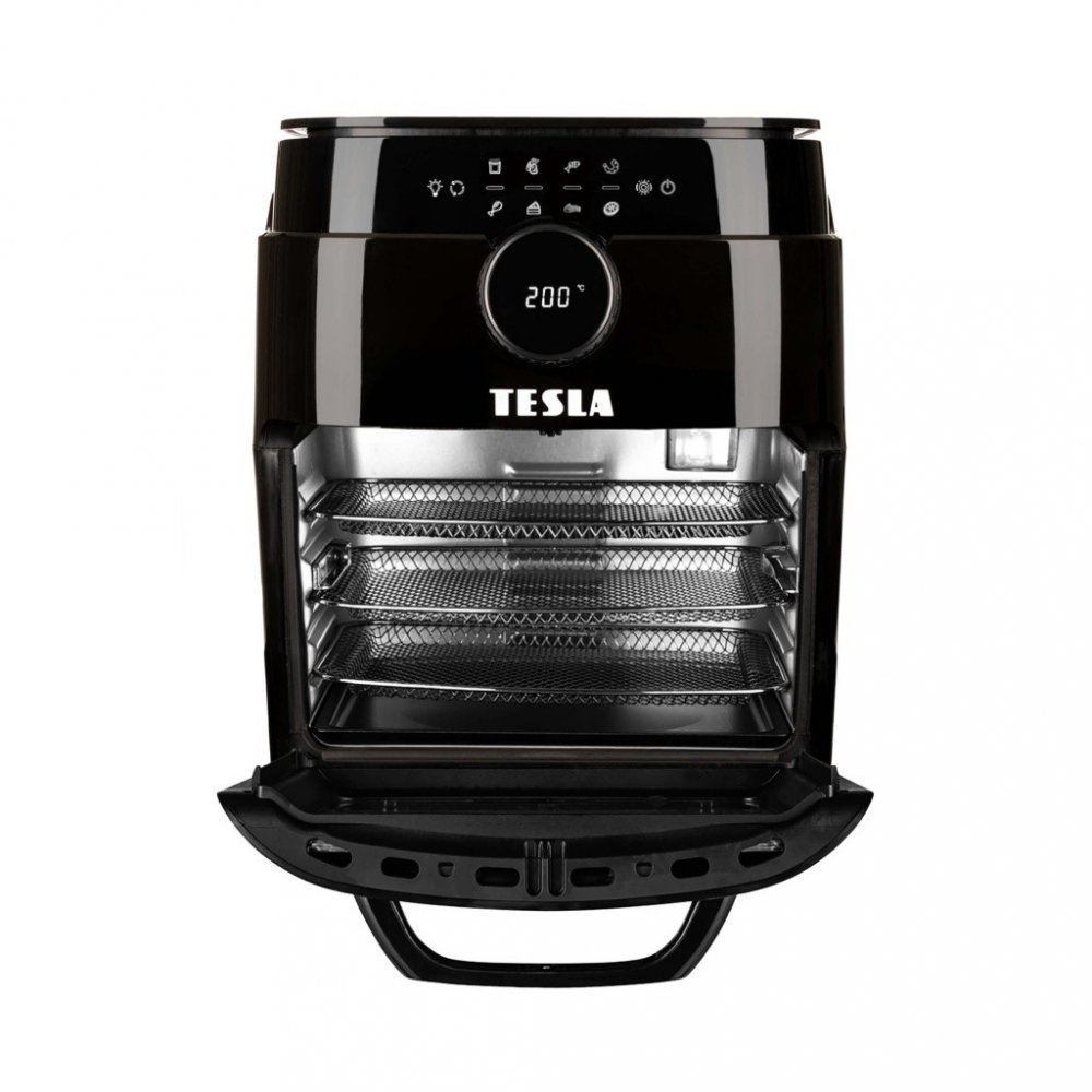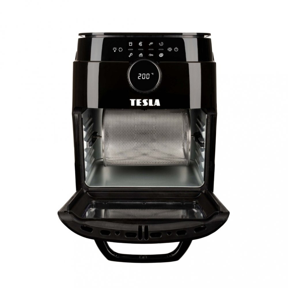Multifunkční digitální horkovzdušná fritéza TESLA AirCook & Grill QG800 WiFi funguje jako otočný gril, trouba nebo třeba sušička ovoce. Je vybavena technologií Heat2Flow, která pokrm připraví pomocí dynamického proudění teplého vzduchu. Vybrat si můžete z 8 automatických programů. Teplotu a délku ohřevu lze upravit i ručně. Spoustu nastavení ovšem můžete zvládnout přímo z vašeho mobilního telefonu díky aplikaci dostupné pro Android a iOS. Horkovzdušná fritéza TESLA na první pohled zaujme svým moderním a ergonomickým dotykovým ovládacím panelem a luxusním designem. V balení naleznete 3 drátěné rošty, otočný košík, grilovací vidlice, odnímatelný držák, držák na špíz, veškeré příslušenství je vhodné do myčky nádobí. Dále je horkovzdušná fritéza AirTESLA AirCook & Grill QG800 WiFi opatřena 60minutovým časovačem s automatickým vypnutím i automatickými programy s maximální teplotou 200 °C, minimální teplotou je 65 °C. Vyzkoušejte některý z receptů z tištěné barevné kuchařky, jež je součástí balení....