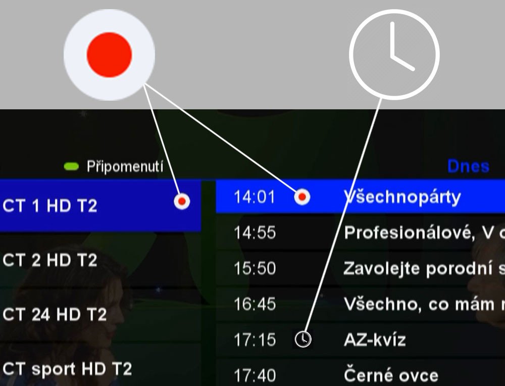 Menu, EPG (elektronický programový průvodce) i teletext jsou lokalizovány do češtiny.