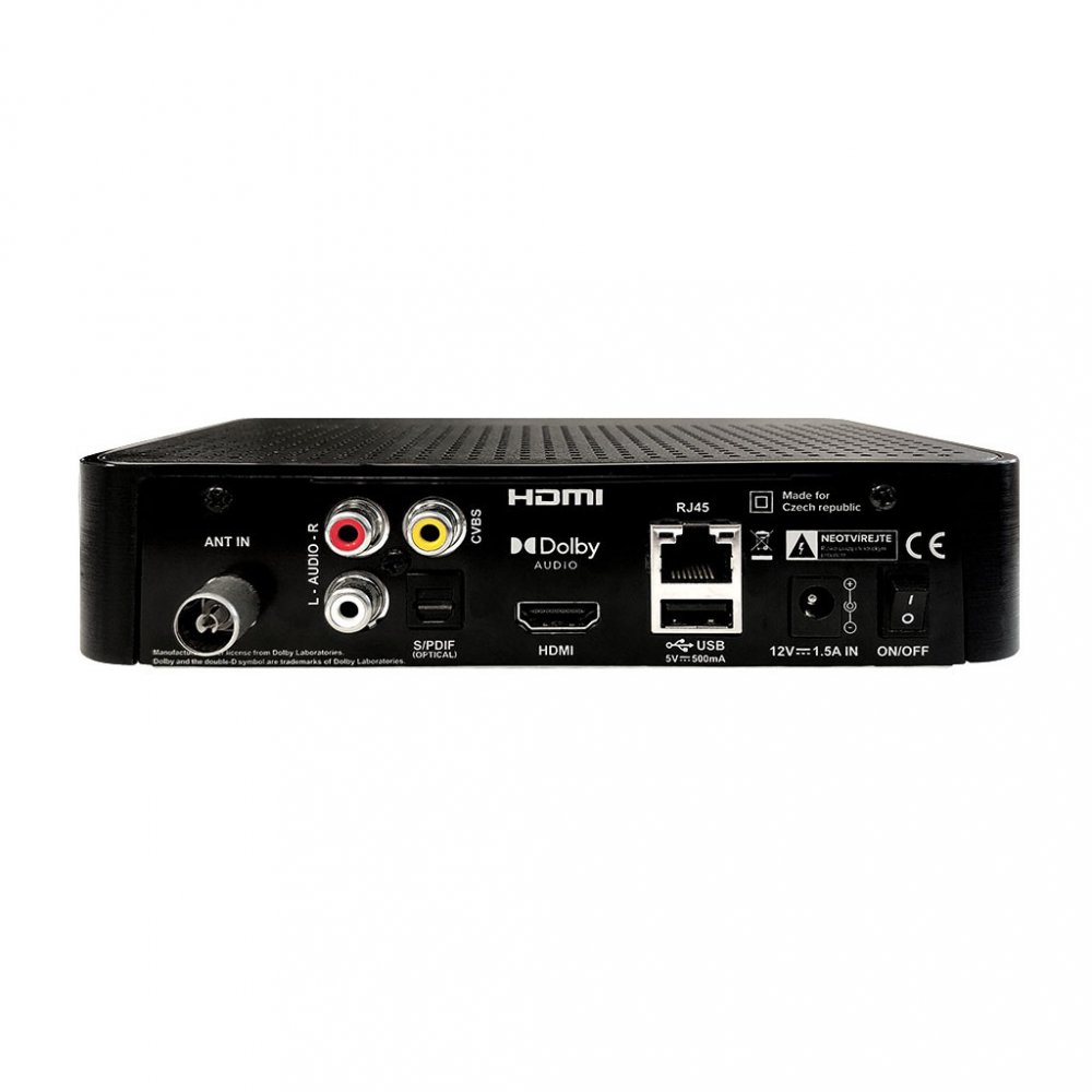 Full HD set-top box pro nové digitální vysílání v České republice DVB-T2 H.265 (HEVC) prostřednicím klasické antény.