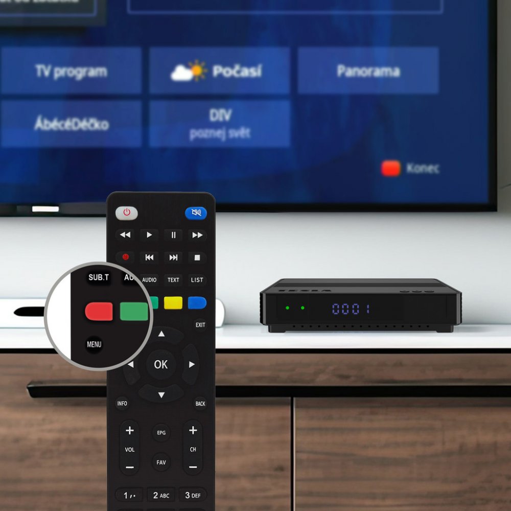 Náš DVB-T2 přijímač je navržen pro maximální kompatibilitu s různými typy televizí. Pro moderní televize jej snadno připojíte pomocí kabelu HDMI, zatímco pro starší modely poskytuje konektor AV. Zařízení také podporuje funkci HDMI-CEC, která umožňuje ovládat připojenou televizi pomocí jednoho dálkového ovladače. To znamená, že váš dálkový ovladač od set-top boxu může současně ovládat televizi - zapínat a vypínat ji nebo měnit hlasitost. Je však důležité poznamenat, že pro využití HDMI-CEC musí tuto funkci podporovat obě zařízení.