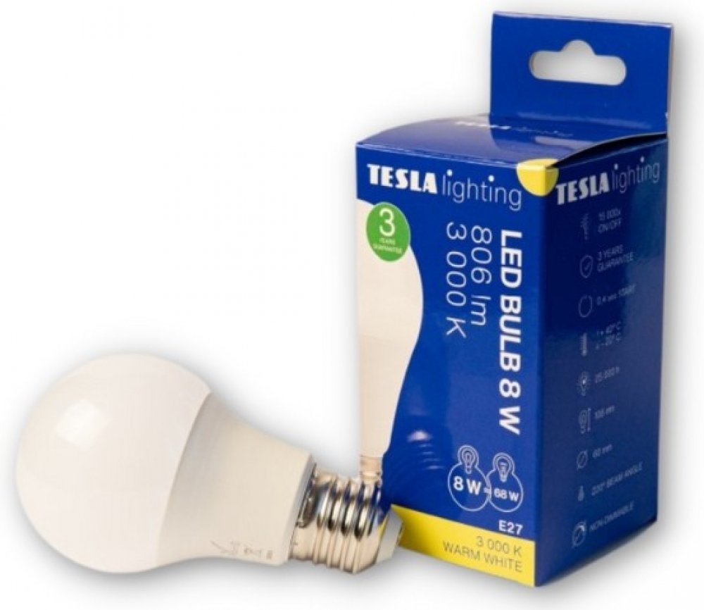 LED žárovka Tesla Lighting je energeticky nenáročná a má dlouhou životnost až 25000 h. Ve srovnání s tradičními žárovkami produkuje minimální množství tepla, kromě toho se rozsvítí okamžitě a bez blikání. Barevná teplota světla, kterou žárovka s paticí E27 vyzařuje, je teplá bílá. Teplá bílá barva osciluje mezi odstíny žluté až oranžové barvy a připomíná barvu svíčky, ohně či západu nebo východu s...