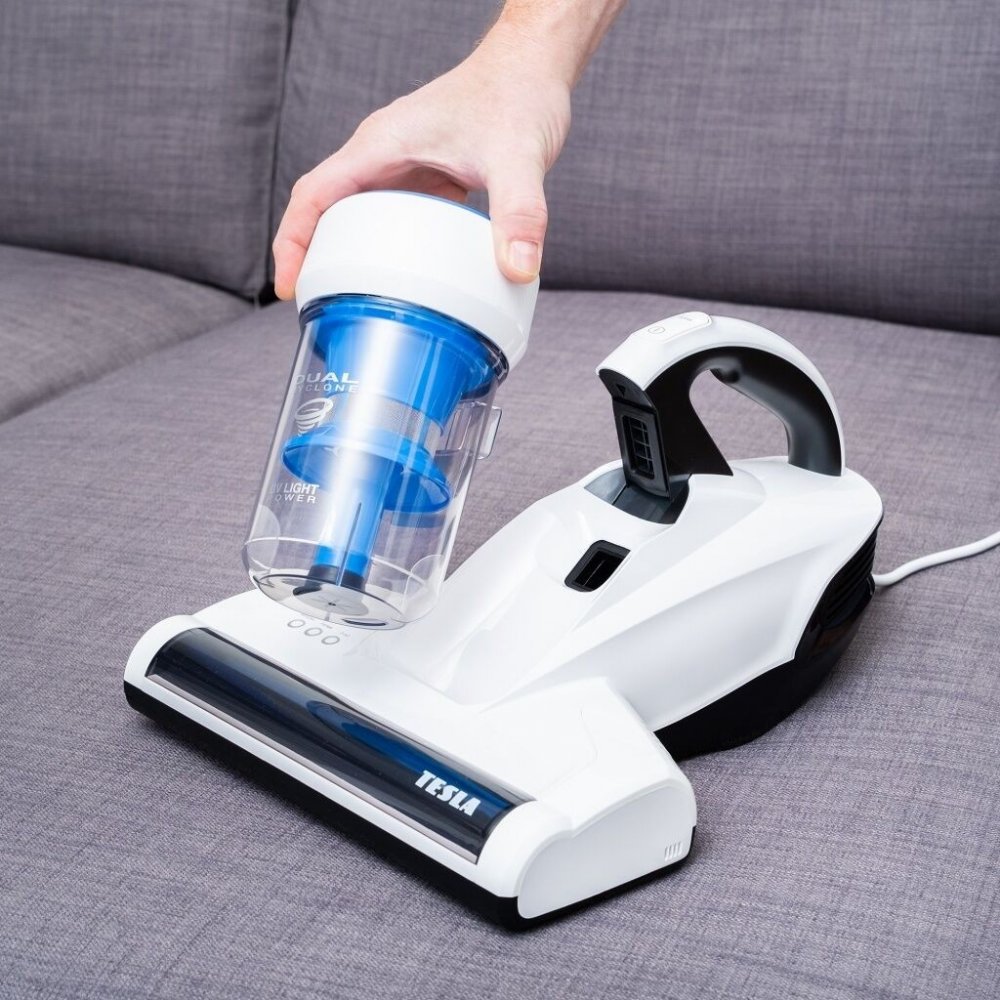 TESLA LifeStar UV550 si při čištění poradí s hluboko usazeným prachem, zvířecími chlupy a jinými nečistotami. Výkonná UV-C lampa a horký vzduch zničí 99.9% bakterií, alergenů a roztočů, sterilizuje matrace, polštáře, čalounění, snižuje riziko vzniku astmatu a kožních onemocnění. Rotační turbo kartáč pronikne hluboko do vláken textilu a efektivně odstraní nežádoucí mikroorganismy.