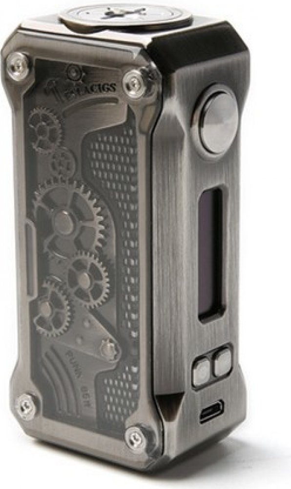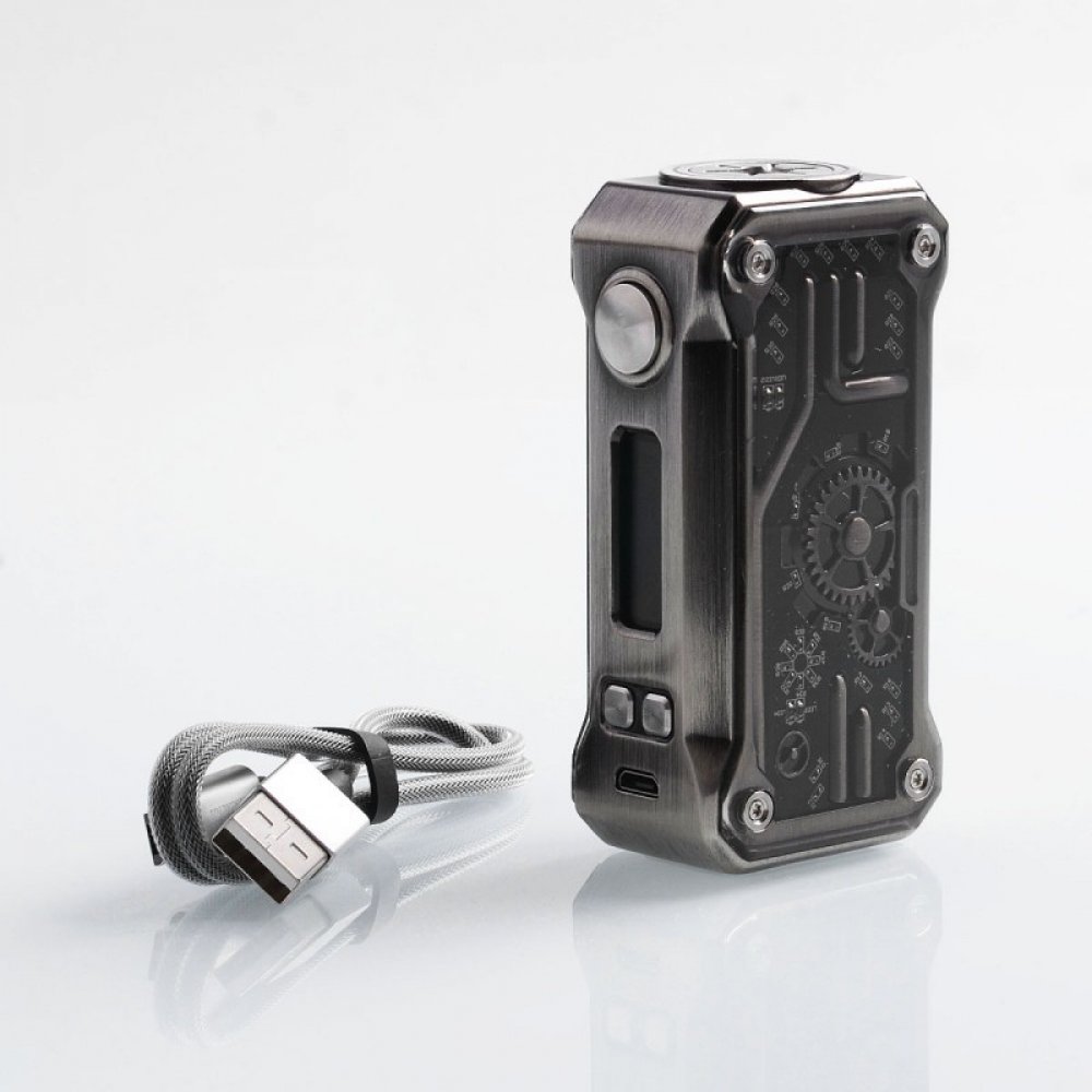 Společnost Teslacigs však chtěla povýšit ještě dál a proto vyrobila mód opravdu kompaktních rozměrů, 510 závit pro atomizéry je tak umístěný doprostřed a utváří ještě lepší vzezření. Boční strany jsou stejně jako u větší verze 220W poctivě přišroubovány šroubky, což více podtrhuje steampunk styl. K tomuto zařízení vám postačí pouze jedna baterie typu 18650.