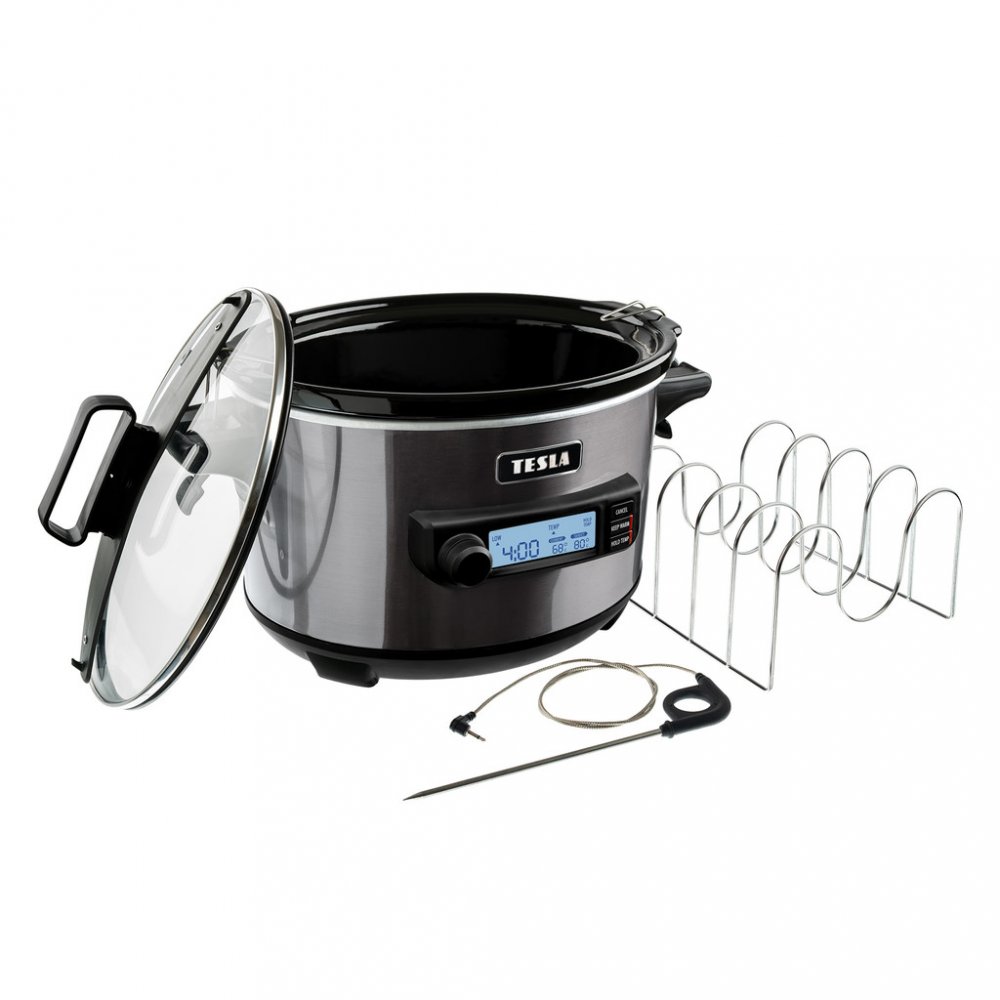 TESLA SlowCook S900 Plus je spolehlivý pomocník pro plnohodnotné domácí vaření bez zdlouhavého stání u plotny. Stačí vložit suroviny, zvolit teplotu a čas a hrnec se postará o zbytek. Díky přesnému řízení ohřevu zvládne i vaření metodou sous vide s vakuově uzavřenými potravinami ve vodní lázni. Integrovaná teplotní sonda hlídá teplotu a skleněná poklice s uzamykacím mechanismem usnadní bezpečný přenos.