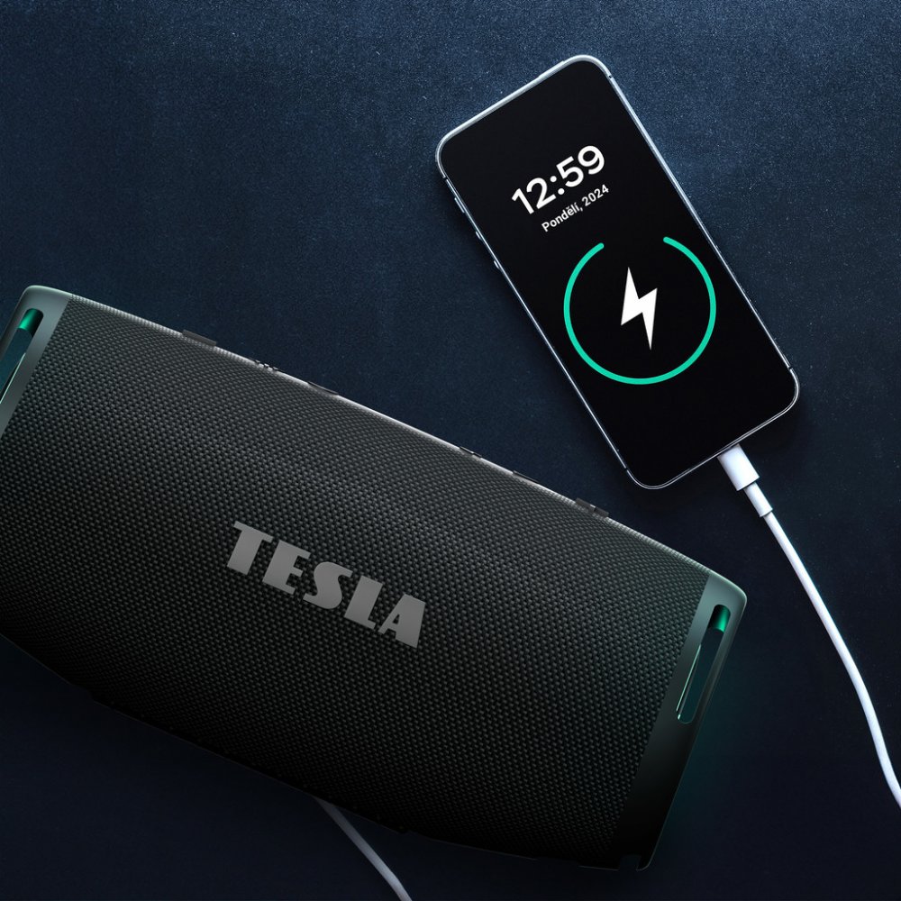 Reproduktor je vybaven vysokokapacitní baterií o kapacitě 8000 mAh, která vám zajistí až 15 hodin nepřetržitého hudebního požitku. Jednou z nejvýznamnějších vlastností TESLA Sound BS70 je funkce powerbanky. Umožňuje nabíjet jakékoliv zařízení, které lze připojit přes USB – mobilní telefony, tablety, chytré hodinky a další elektronická zařízení. Poskytuje tak kdekoliv nejen skvělý zvukový zážitek, ale také praktickou funkci nabíjení, která vám zajistí, že nezůstanete bez energie.