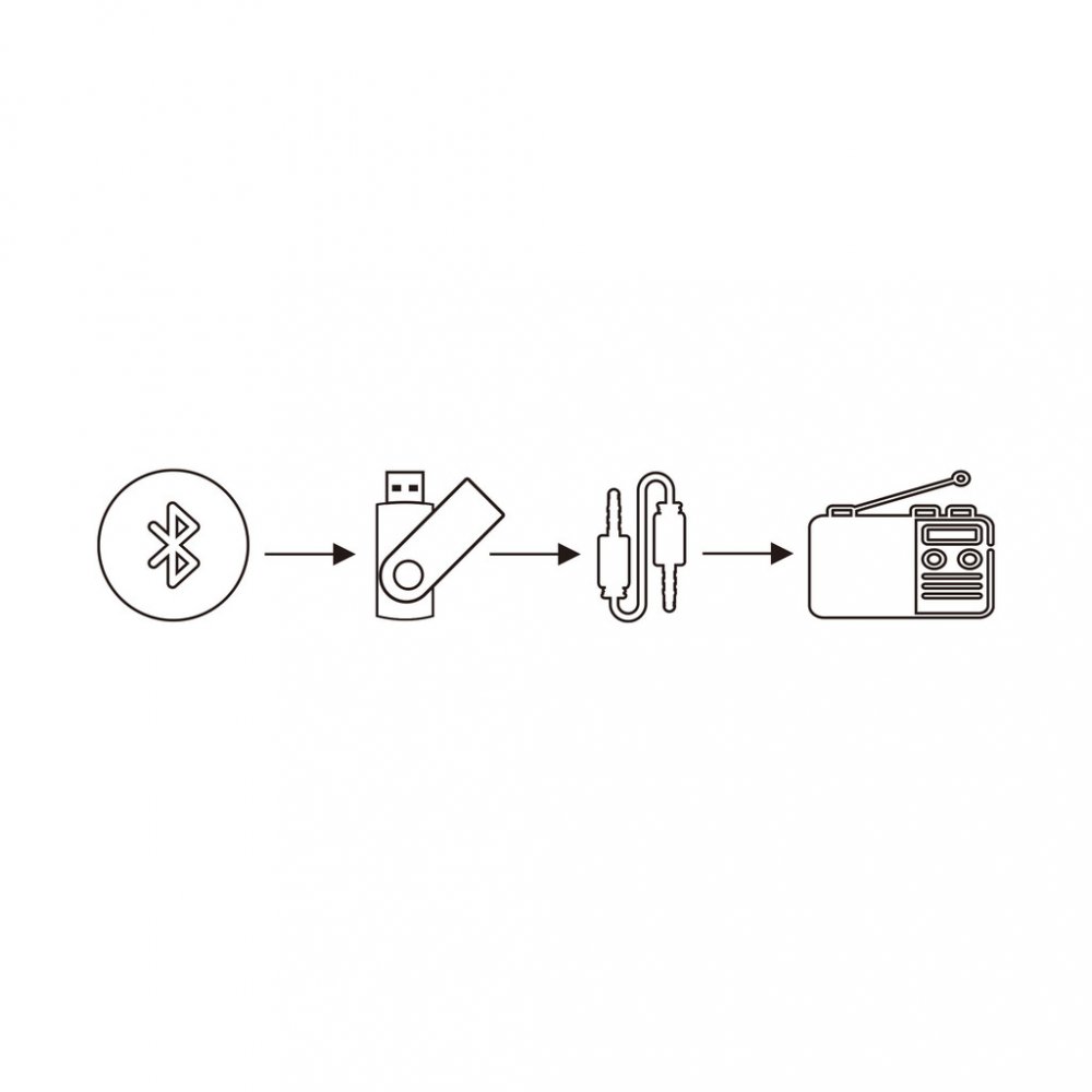 funkce bezdrátového přehrávání hudby z mobilního zařízení přes Bluetooth, FM rádio, přehrávání z USB zařízení, připojení externího zařízení pomocí kabelu Jack 3,5 mm