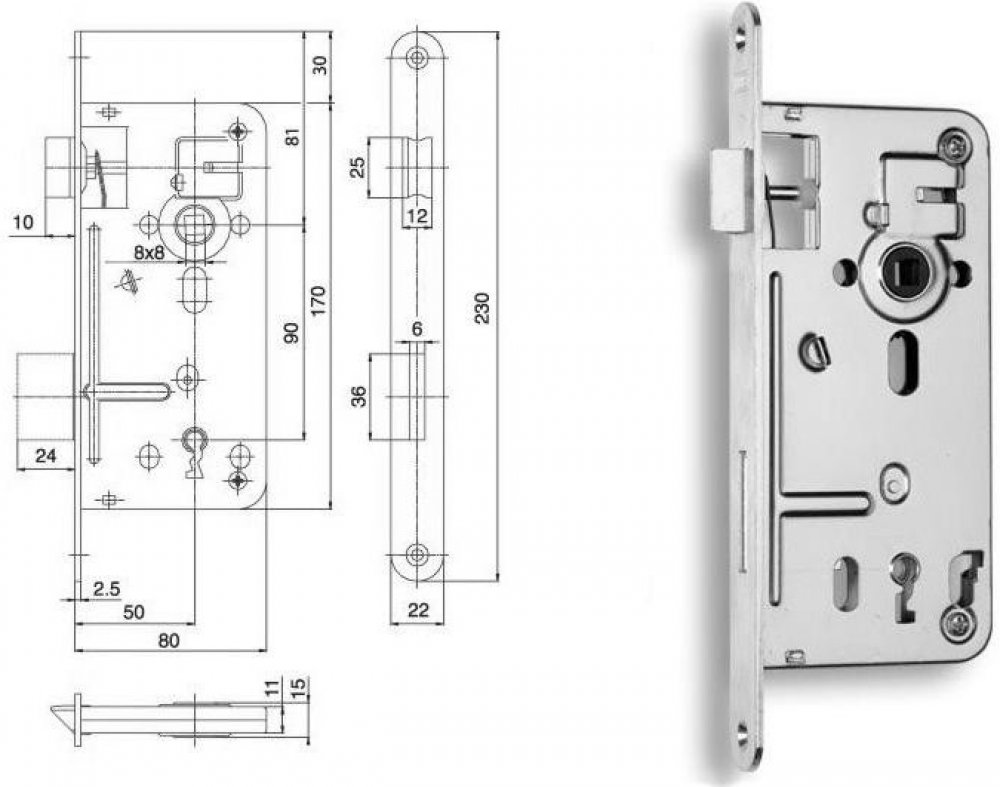 zámek obyčejný bez převodu určený pro jedno a dvojkřídlé dveře pravé či levé