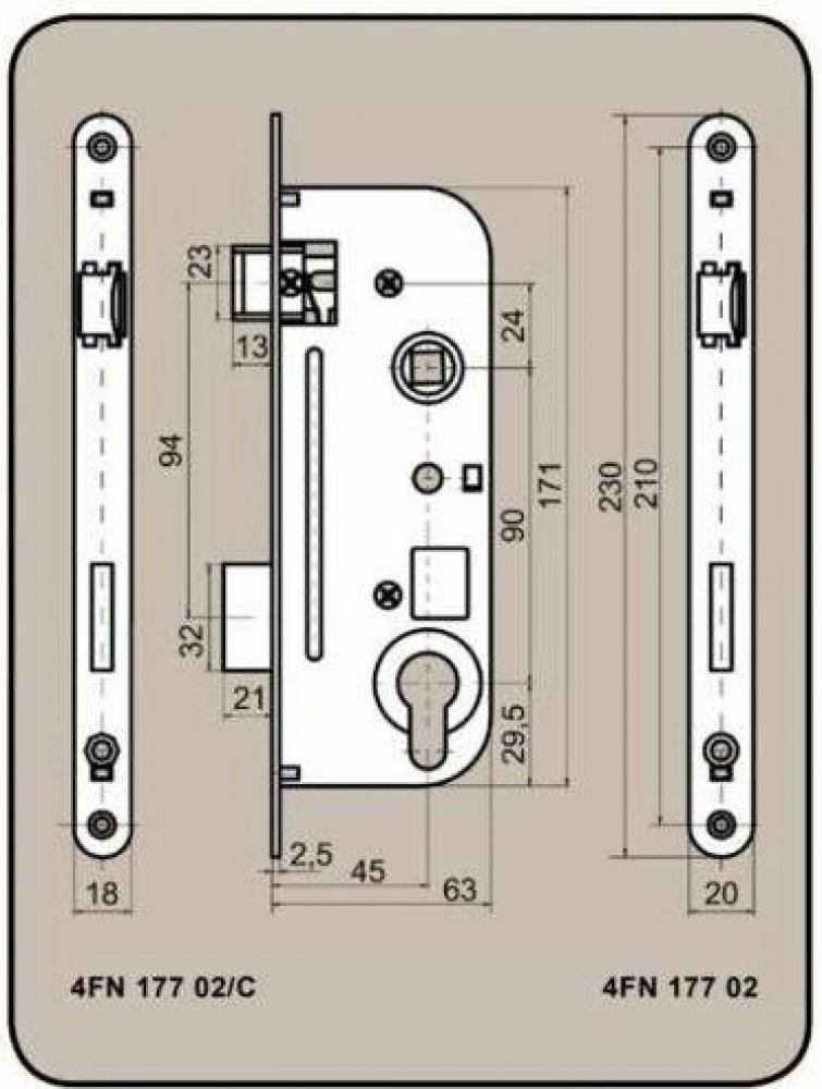 Vzdálenost mezi otvorem pro kličku a otvorem pro vložku je 90 mm, hloubka pro zadlabání je 63 mm.