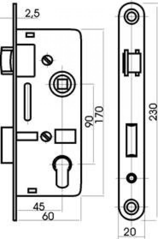 Tesla Zámek zadlabací stavební V6090/45 PL - PZ