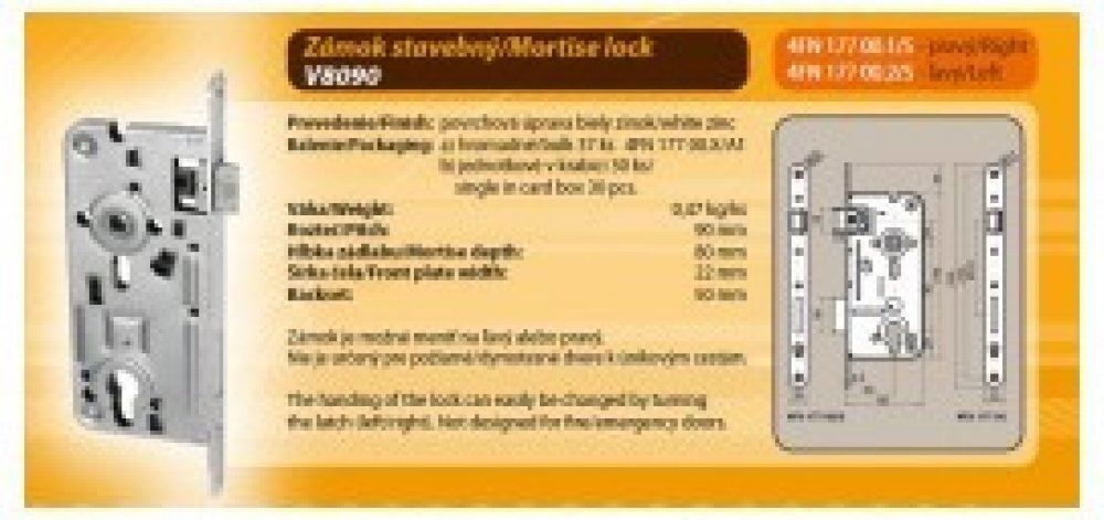 Tesla Zámek zadlabací stavební V8090/50 PL - PZ