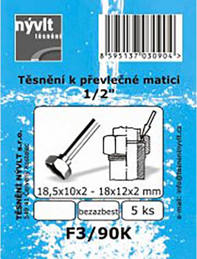 Sada těsnění převlečené matice 1/2, bezazbest, 18 x 12 x 2 mm, 5 ks.