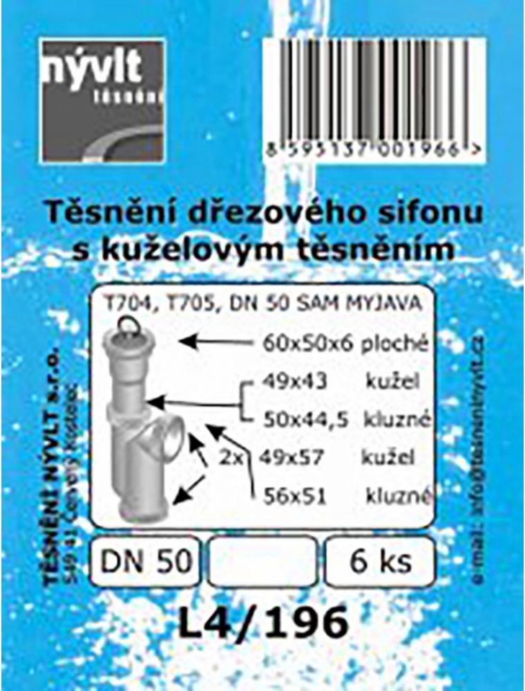Těsnění L4/196 k dřez.sifonu DN50 sada L4196