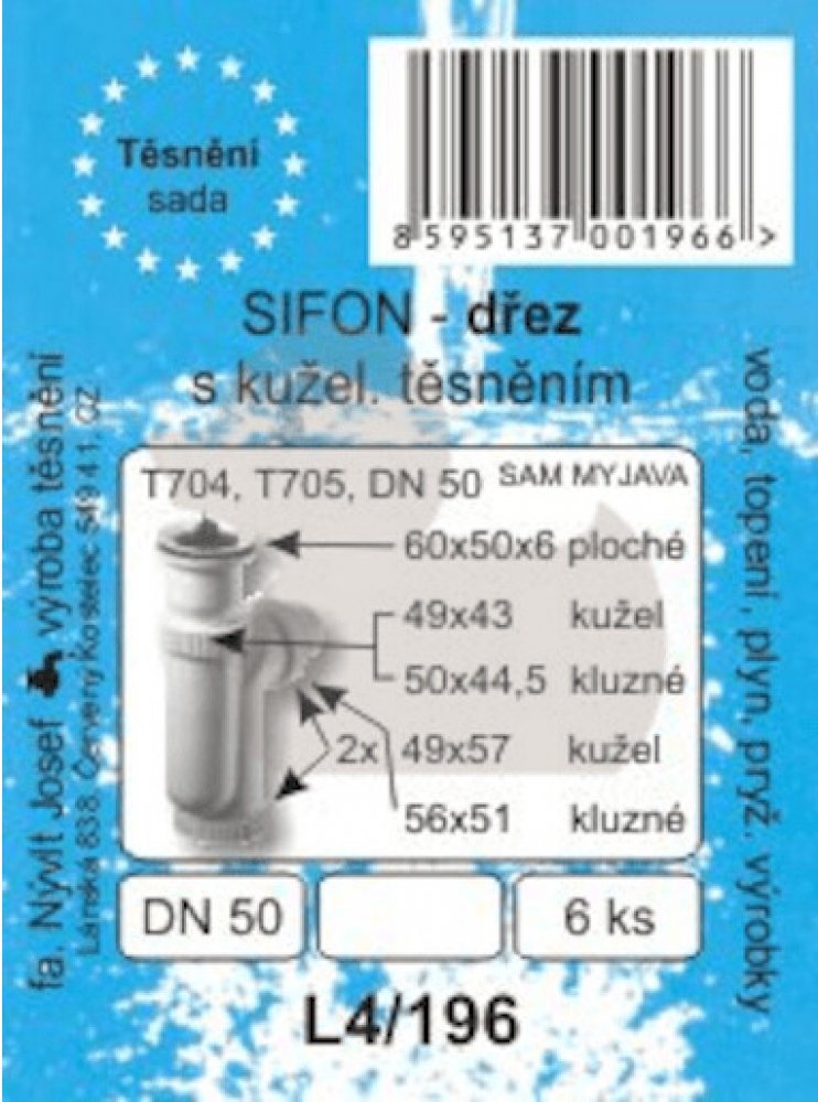 Těsnění L4/196 k dřez.sifonu DN50 sada L4196