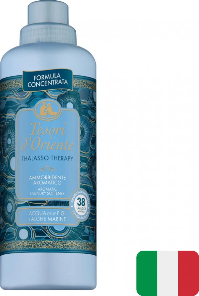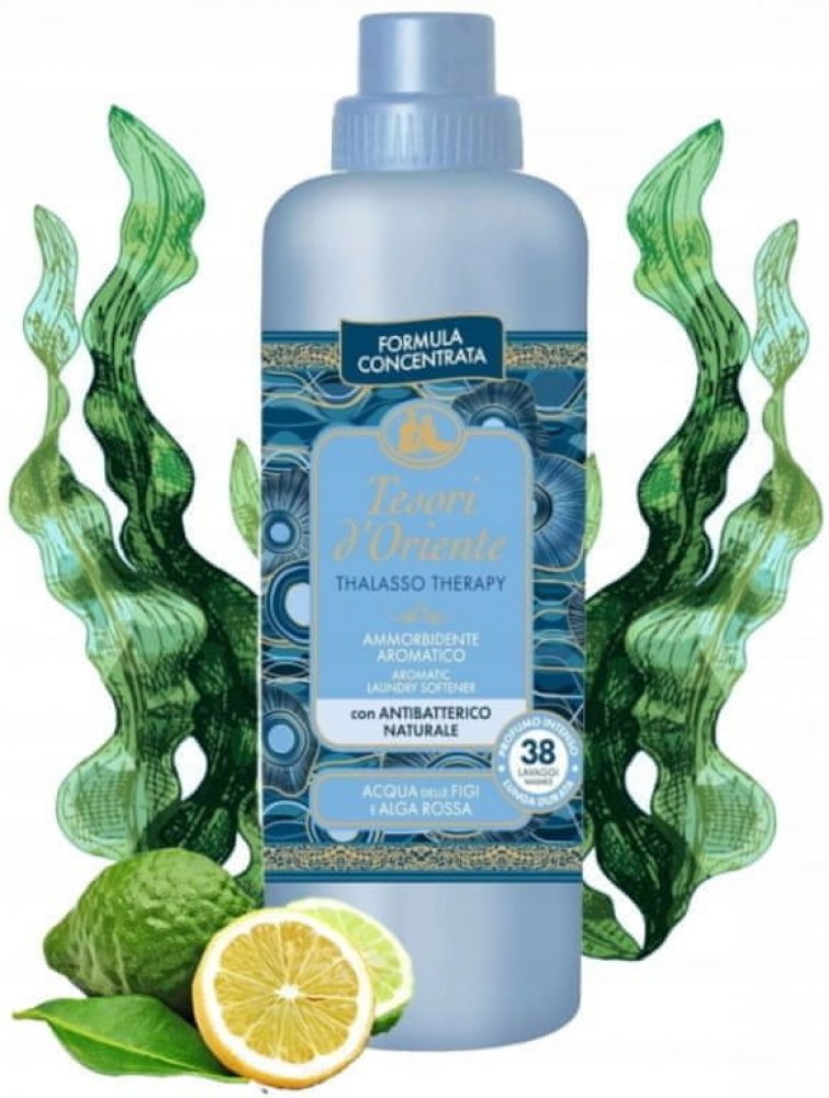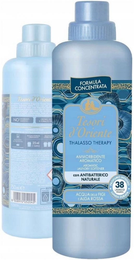 Aviváž TESORI D’ORIENTE Thalasso Therapy obohatí vaše praní o jedinečný zážitek inspirovaný atmosférou tropických ostrovů. Svěží mořská vůně s tóny energie a vitality je uzavřená v mikrokapslích, které se postupně uvolňují během nošení prádla. Díky své jemné, ale účinné receptuře prádlo nejen provoní, ale také zanechá měkké, snadno žehlitelné a hygienicky čisté. Koncentrované složení s přírodní antibakteriální složkou zajišťuje dlouhotrvající svěžest bez kompromisu v péči o textilie.