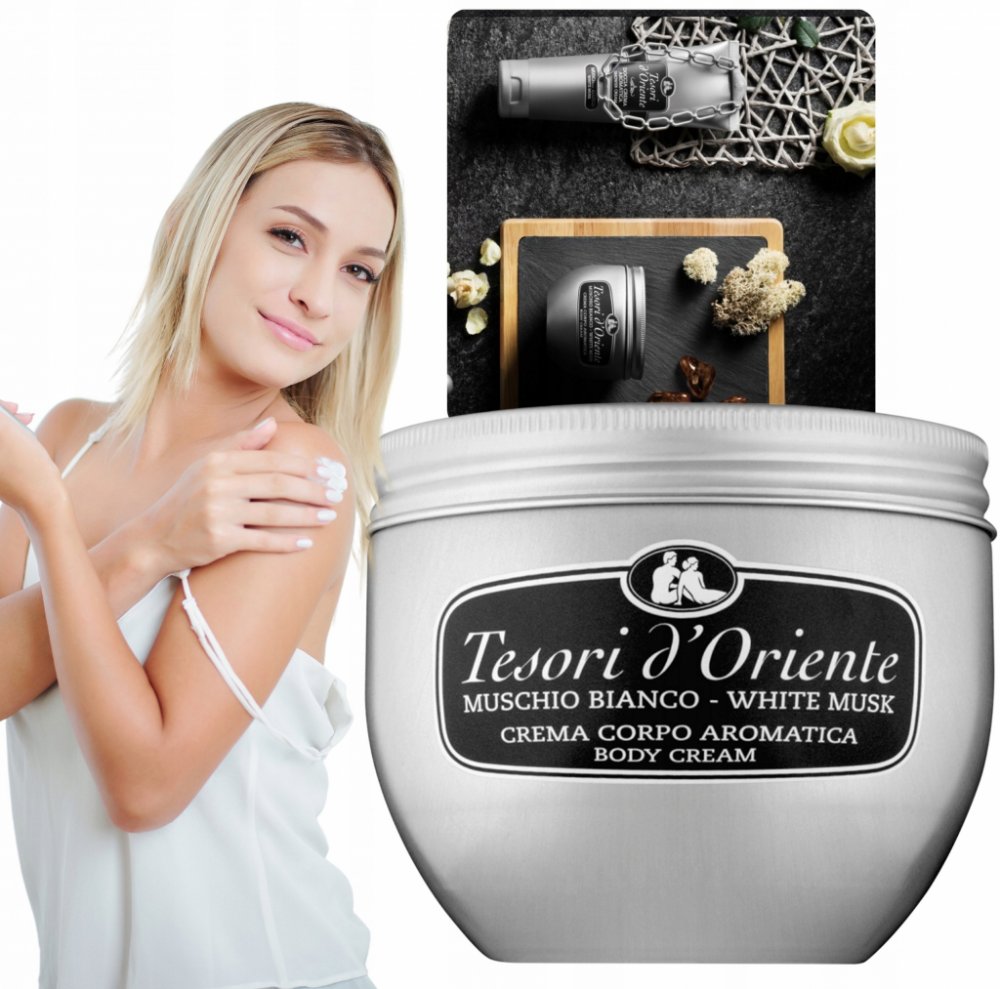 Tesori d'Oriente tělový krém Muschio Bianco 300 ml je luxusní kosmetický produkt, který nabízí péči o vaši pokožku v kombinaci se záhadnou a smyslnou vůní. Následující popis vám přiblíží tento exkluzivní tělový krém: