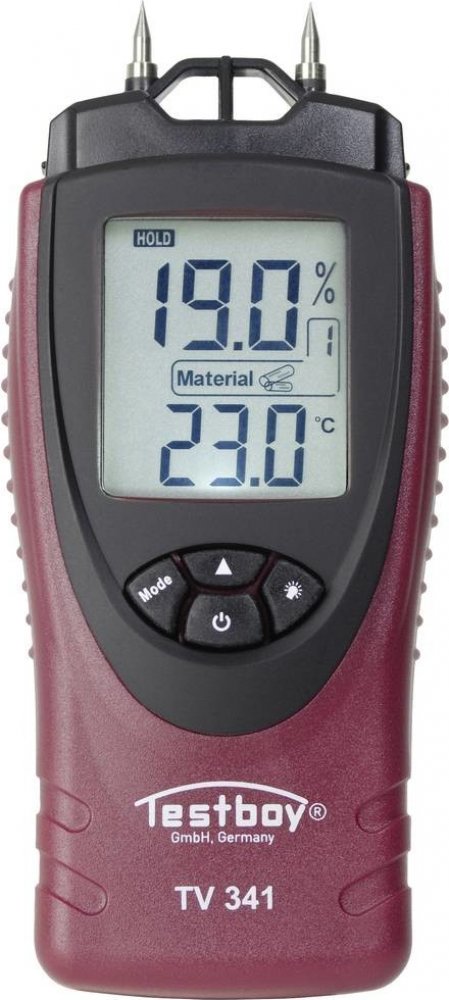 Vlhkoměr pro materiály TV 341 Provedení: Kryt z ABS plastu. Bez samostatných měřicích kabelů nebo hrotů. Integrovaná samotestovací jednotka. Funce: Zapínání a automatické vypínání. Použití: Měření objemu vlhkosti ve stavebních materiálech, např. řezivo, překližka, dřevotříska, dýha, sádrokarton nebo omítka. Rozsah dodávky: Vlhkoměr, 3 baterie AAA/LR03, 1,5 V a taška.