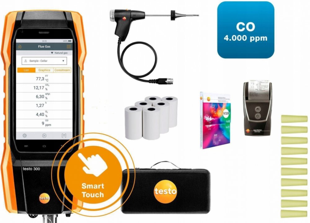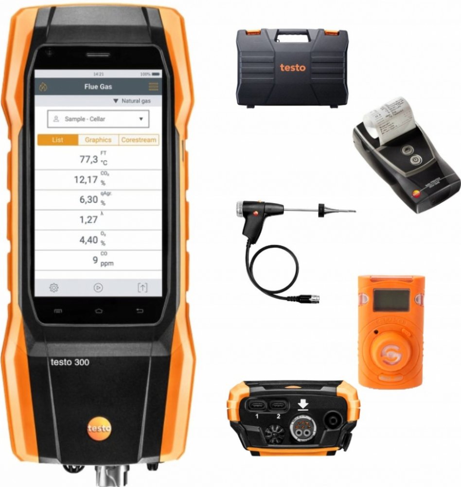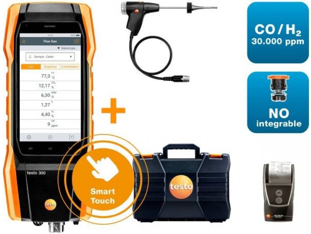 testo 300 Longlife sada 2 - Analyzátor spalin (O2, CO s kompenzací H2 až do 30,000 ppm, NO – možnost)