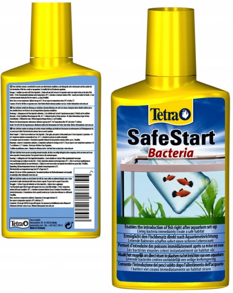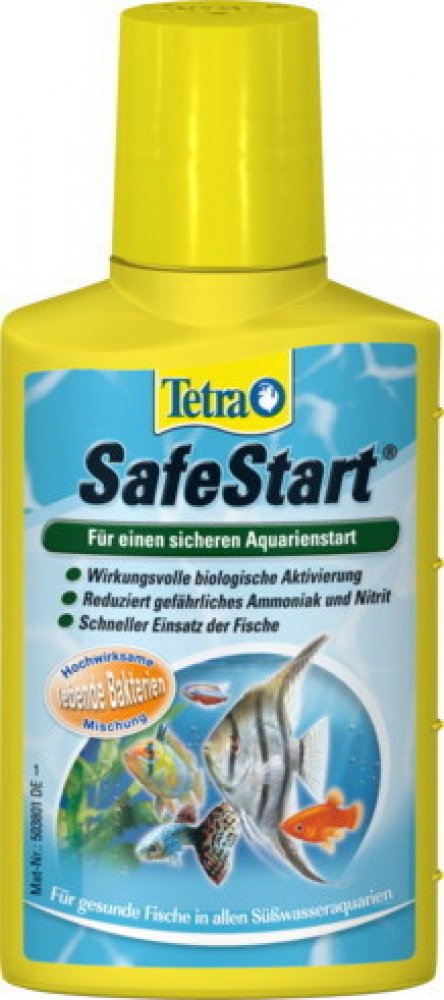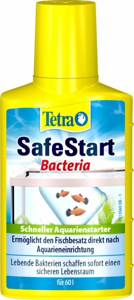 Tetra SafeStart umožňuje okamžité nasazení ryb do nově založeného akvária. Obsahuje živé nitrifikační bakterie, které okamžitě vytvářejí biologicky aktivní prostředí, rozkládají amoniak i dusitany a chrání tak ryby před toxickými látkami. Ideální také po výměně vody, léčbě nebo jiném zásahu do filtrace.
