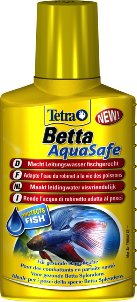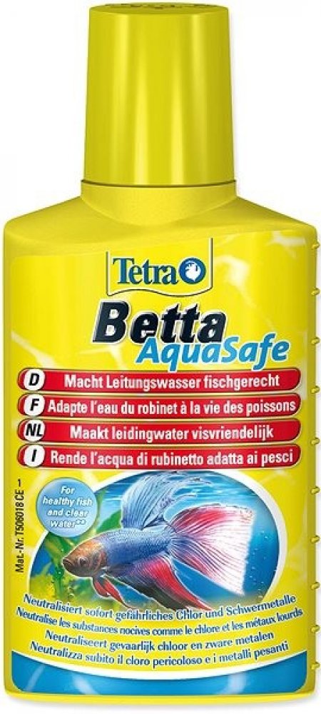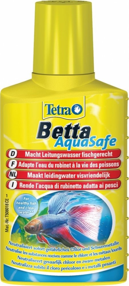 Roztok Tetra Betta AquaSafe okamžitě upraví vodovodní vodu v akváriu na vodu vhodnou pro betty bojovnice.