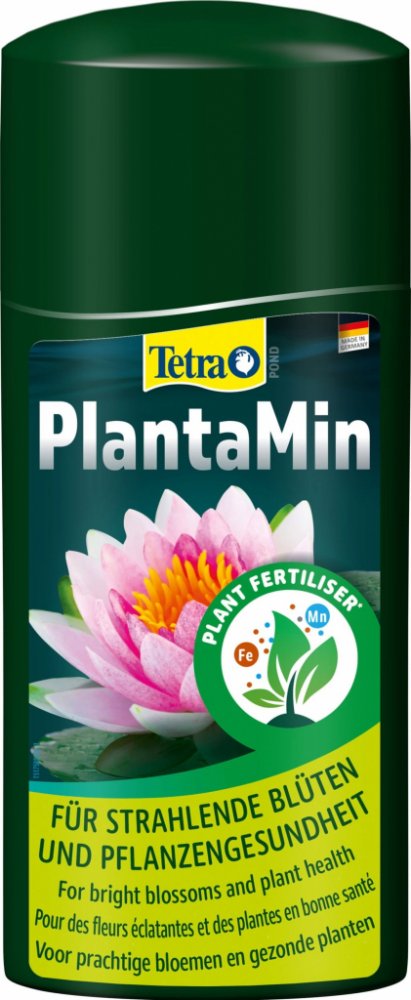 Tetra Pond Planta Min vyživuje vodní rostliny, pomáhá vytvořit atraktivní a vyvážené podmínky v jezírku. Poskytuje nezbytné výživové a stopové prvky jako je železo, spolu s makrovýživným draslíkem pro silný, zdravý růst rostliny. Je snadno absorbován listy, podporuje rozvoj chlorofylu a fotosyntézu, je vhodný pro ponořené a plovoucí jezerní rostliny, neobsahuje dusičnany ani fosfáty a nezpůsobuje tak růst řas.