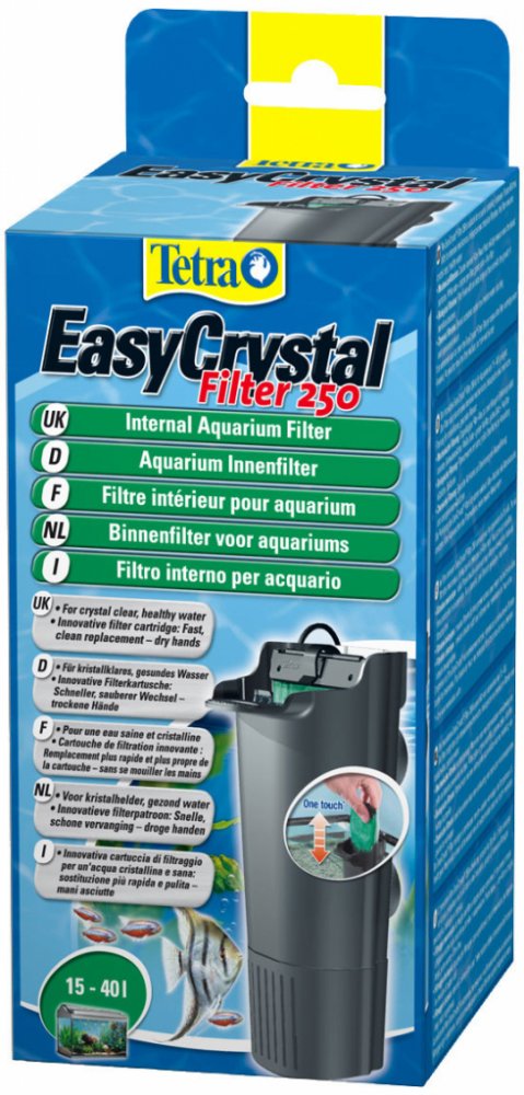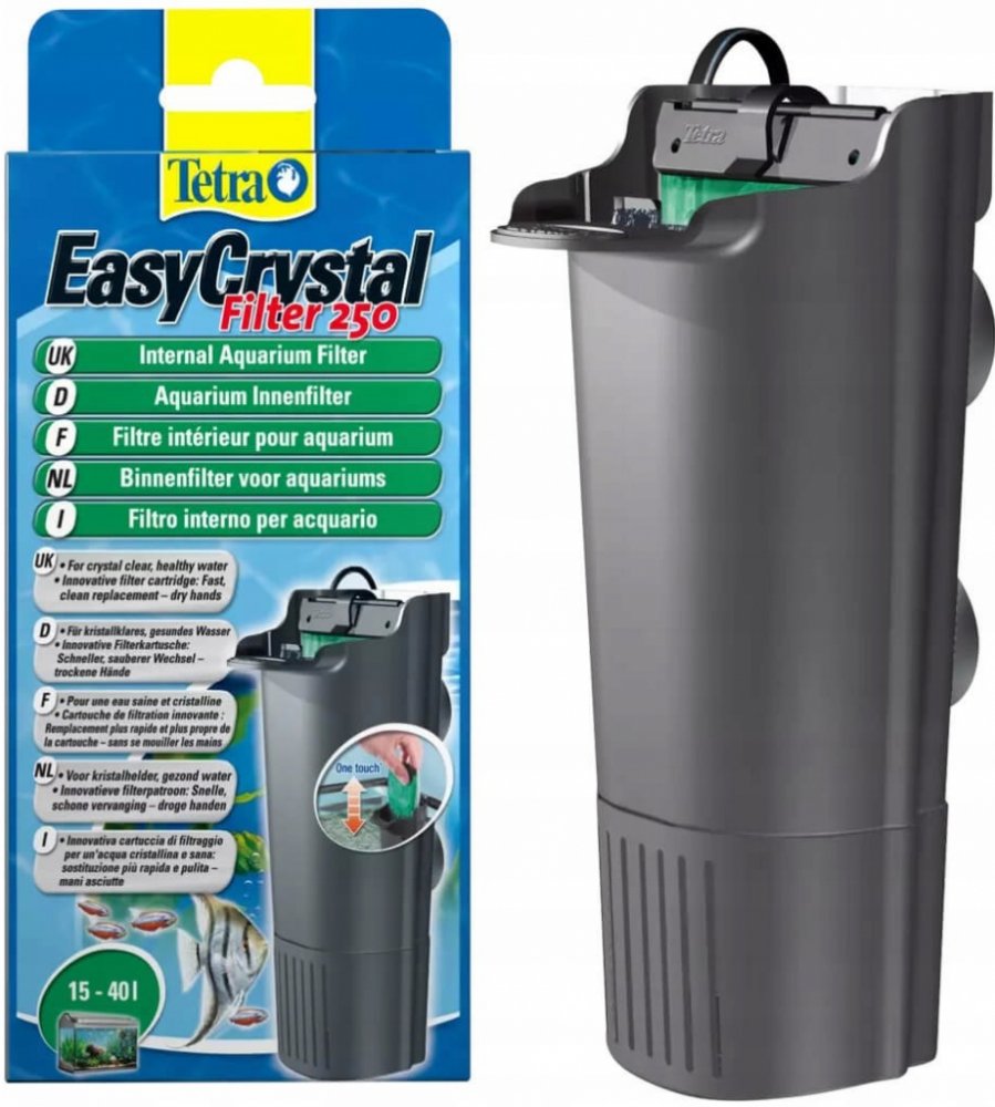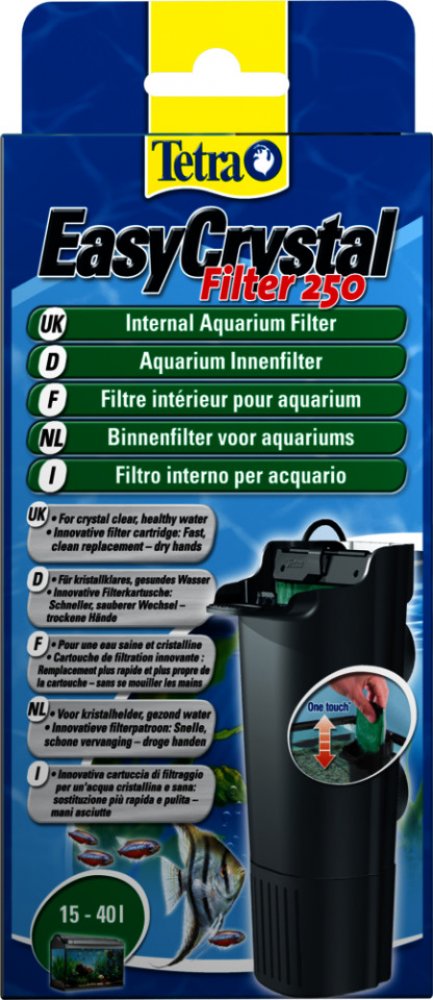 Výkon: 250 l / h. Svým vynikajícím mechanickým, biologickým i chemickým filtrováním se filtr Tetratec EasyCrystal postará o křišťálově čistou a nezávadnou vodu ve vašem akváriu. Údržba je velmi jednoduchá, bez promývání filtračního média, bez mokrých rukou.