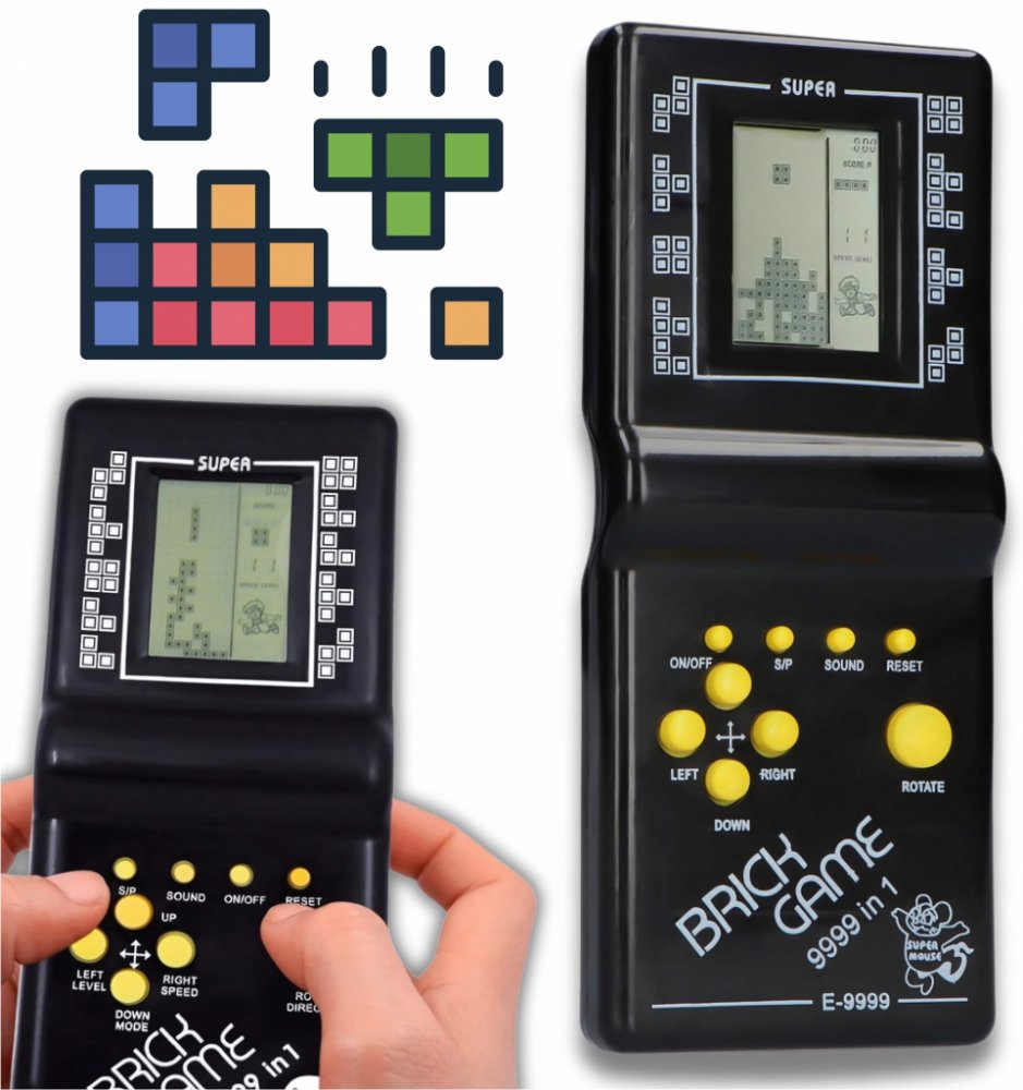 TETRIS Elektronická hra Retro kapesní konzole pro dospělé dětiOživte své vzpomínky na dětství a přeneste se do světa retro her s konzolí Brick Game 9999 v 1!
