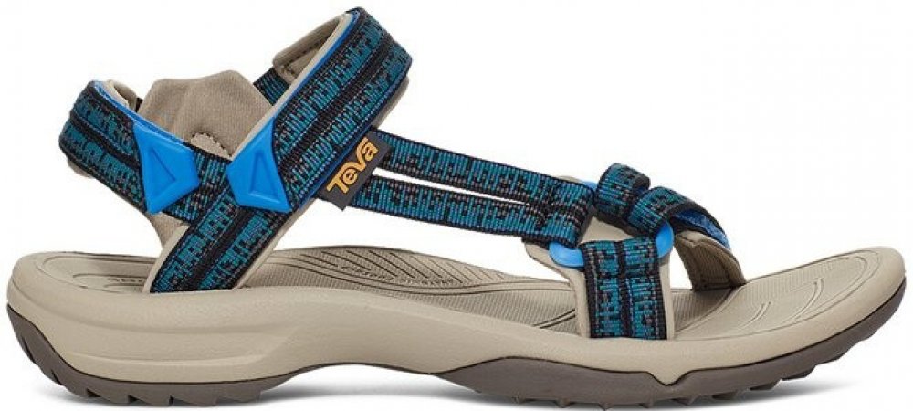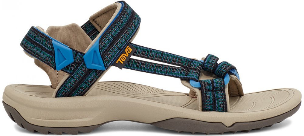Pohodlné a ultralehké dámské sandály vhodné i do vody. Nastavitelné polstrované pásky na suchý zip, antimikrobiální úprava, otevřená špička, podrážka Spider Original, tlumení v patě. Barva černá se zelenými a modrými detaily. Pro lehčí turistiku, cestování, kemping, do města.