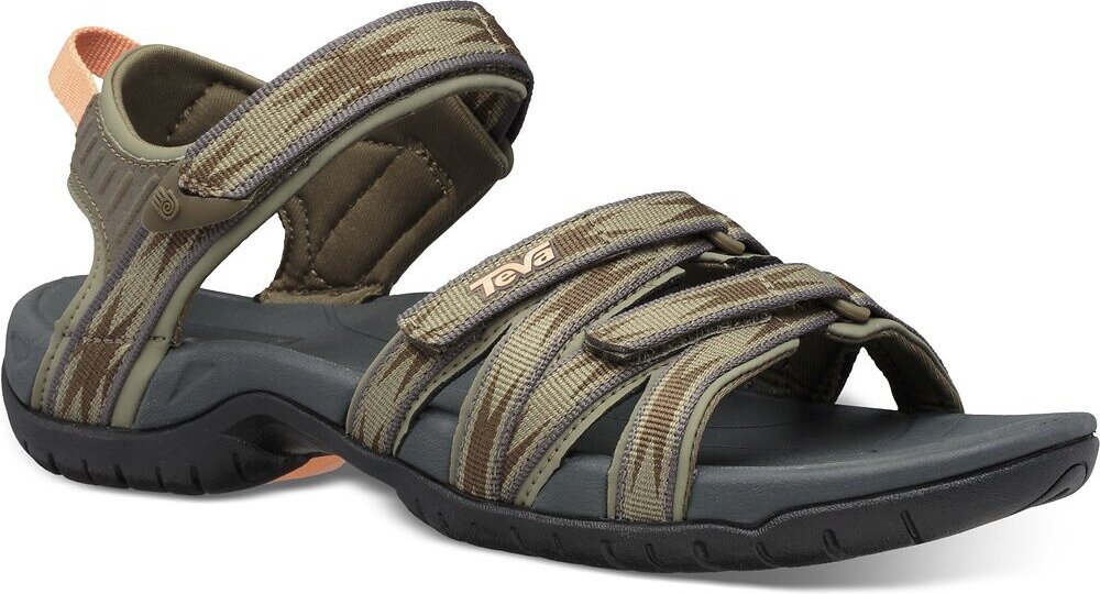Elegantní pohodlné dámské sportovní sandály vhodné i do vody. Nastavitelné pásky na suchý zip, antimikrobiální úprava, neoprenová podšívka, otevřená špička, podrážka Spider Original. Barva khaki s hnědým vzorem. Pro letní cestování, volný čas a do města.