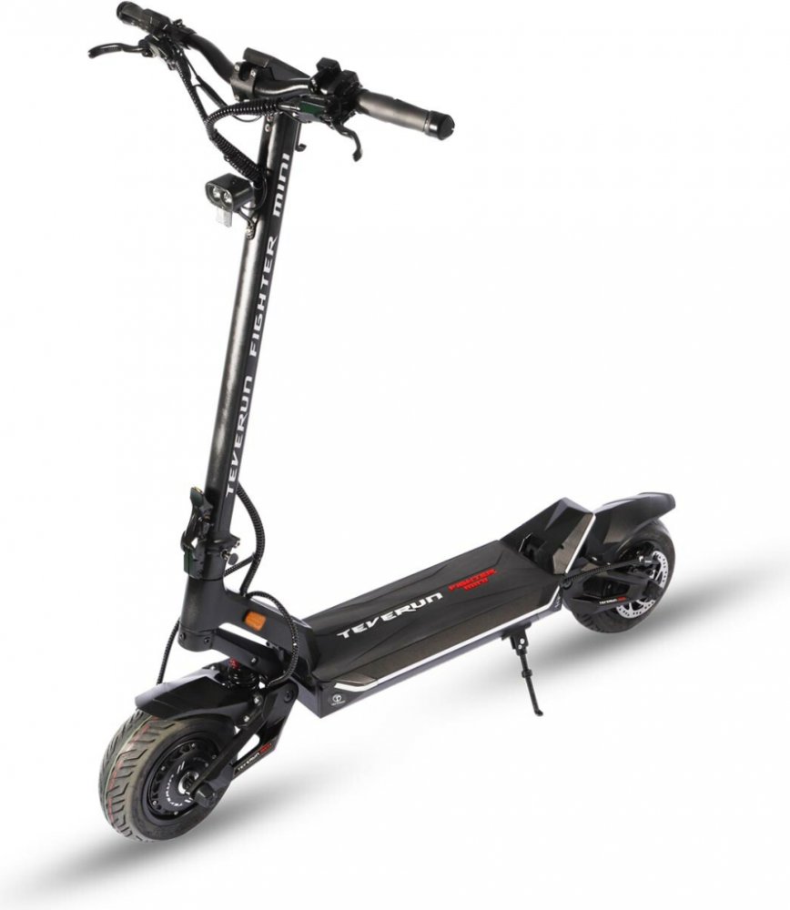 Teverun Fighter Mini Eco má opět dva motory o výkonu 2x 1 000 W, které dokáží vyvinout rychlost až 60 km/h (po odblokování). Díky 20,8Ah baterii se můžete vydat až na 50 km dlouhý výlet. O vaši bezpečnost se starají hydraulické kotoučové brzdy Teverun s okénkem pro kontrolu stavu minerálního oleje v brzdách.