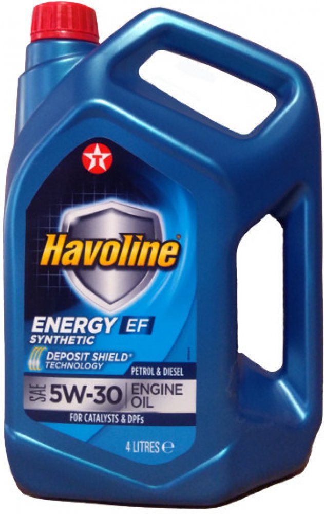 Motorový olej Texaco Havoline Energy EF 5W-30, 4L Vysoce výkonný syntetický motorový olej s obsahem vyspělé technologie aditiv tak, aby splnil nejnáročnější požadavky specifikace Ford WSS-M2C 934B pro motorové oleje. Je vhodný pro benzínové i naftové motory osobních a lehkých užitkových vozidel. Tento olej obsahuje nízký obsah popela LowSAPS, nepoškozuje filtry pevných částic a třícestné katalyzátory. Parametry: Motorový olej Texaco Havoline Energy EF 5W-30, 4L Typ oleje syntetický Použití oleje motorový olej Specifikace ACEA A5/B5 Firemní normy Ford WSS-M2C934-B SAE 5W-30 Objem balení 4 litr