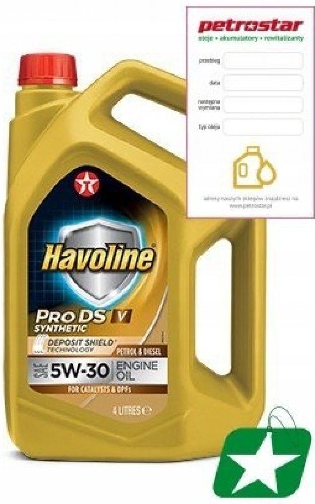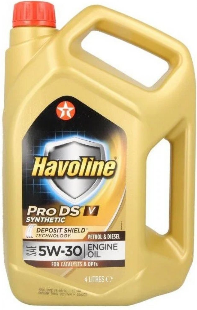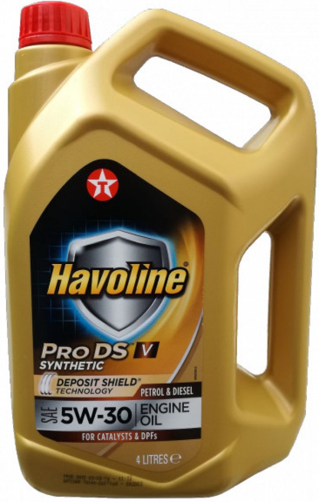- Havoline ProDS V SAE 5W-30 je mazivo vhodné pro široký okruh benzinových a naftových motorů osobních automobilů a lehkých užitkových automobilů s naftovými motory, a to s turbodmychadly i bez turbodmychadel. Bylo speciálně vyvinuto pro prodloužené intervaly výměny oleje v Evropě a je povinné pro naftové motory VW/Audi s filtrem pevných částic (DPF).