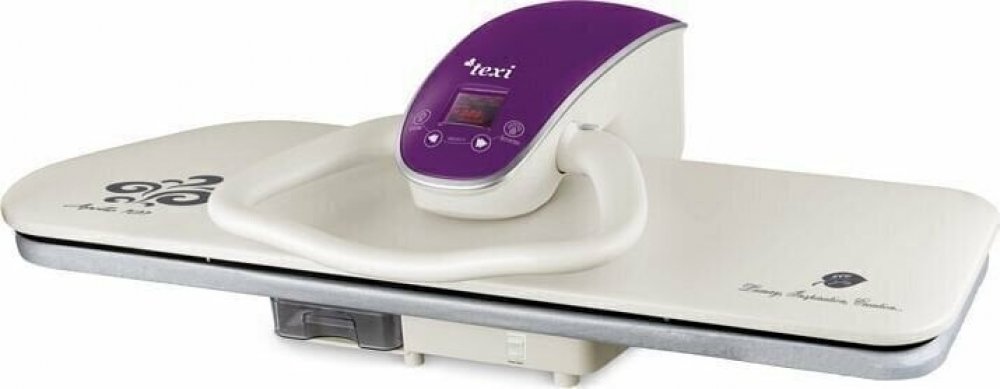 Elektronicky řízený žehlící lis. Vysoce kvalitní elektronický žehlicí lis s mimořádně velkou žehlící plochou 99×29 cm, až 18× větší než běžná žehlička. Je ideální pro domácnosti, kde se žehlí často nebo ve větším objemu. Není vhodný pro průmyslové provozy Hlavní vlastnosti: Možnost žehlení na sucho is párou BOOSTER funkce – silný parní impuls na nepoddajné látky Automatický přítlak 50 kg pro dokonalé vyžehlení 5-stupňové nastavení teploty (60–180°C) pro nylon, hedvábí, vlnu, bavlnu, len Parní výkon: 120 g/min s rovnoměrným rozptylem díky labyrintovému systému Nádrž na vodu: 800 ml Anti-calk kazeta – není nutné používat destilovanou vodu Bezpečnostní automatické vypnutí po 15 sec. zavření nebo 15 min. nečinnosti Zvuková upozornění na stav vody, teplotu a provoz Příslušenství: poduška na švy a rukávy Výkon: 2 200 W Hmotnost: 15 kg Volitelné příslušenství Stojan TEXI AP01 – pevná výška 93 cm Stojan TEXI AP02 – nastavitelná výška 63–73 cm