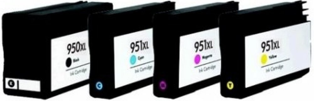HP CN045A+CN046,CN047, CN048 - kompatibilní sada cartridge 950XL černá+ 951XL CMY barvy s plnohodnotnými čipy je ideální volbou mezi vysokou úsporou nákladů na tisk a ustálenou kvalitou výtisků. Samozřejmostí je jednoduchá instalace, stejná jako u originálních kazet. Tyto cartridge jsou plně funkční, což znamená, že není potřeba cokoliv jiného dokupovat, pouze vybalíte, sejmete eventuální ochranný klip či pásku, vložíte do tiskárny a můžete tisknout. Níže uvádíme přehled konkrétních typů tiskáren pro které je tato cartridge určena. V případě, že zde nenaleznete Váš typ tiskárny, kontaktujte nás a obratem Vám rádi poradíme. Děkujeme